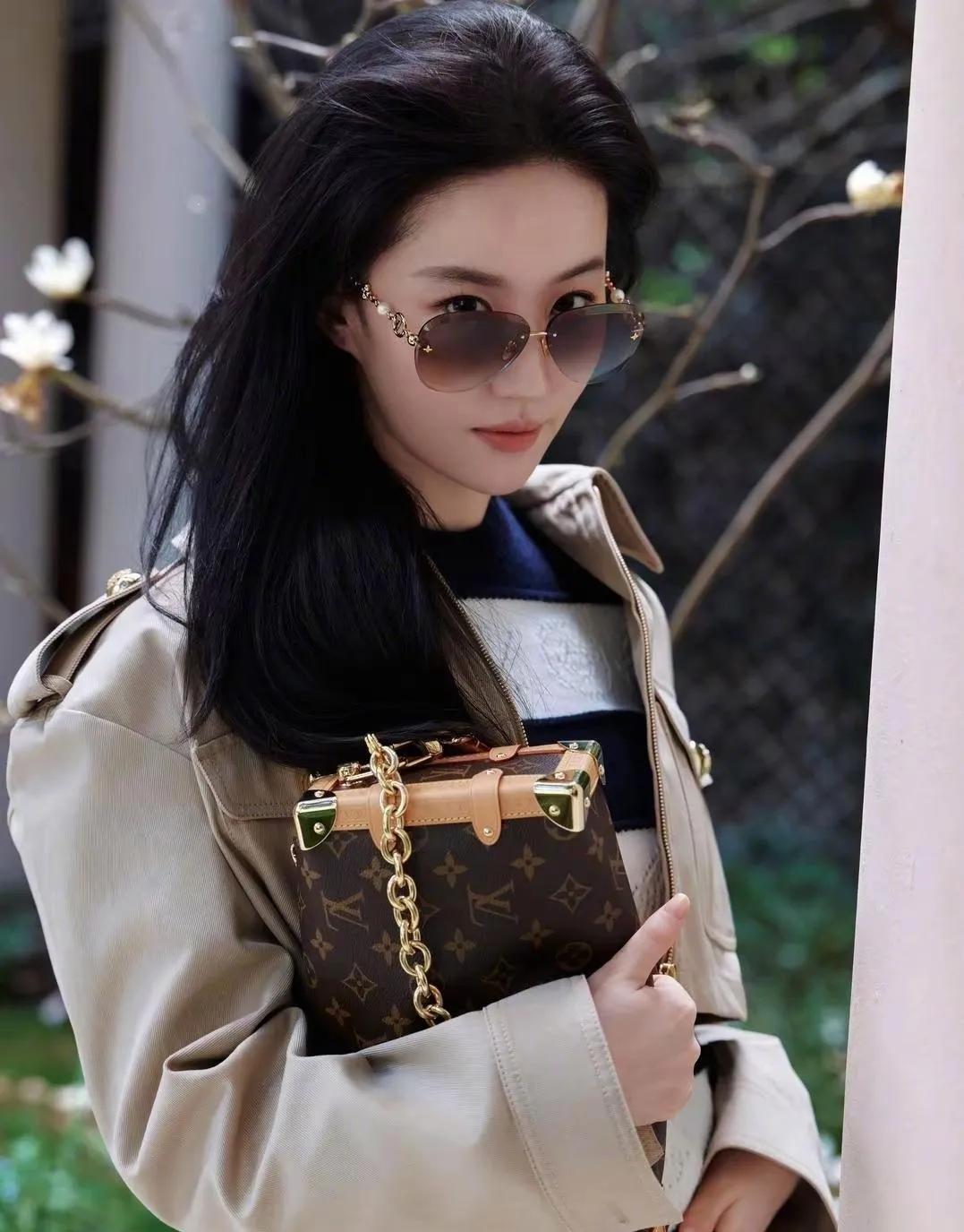 被刘亦菲的时尚品味狠狠拿捏了!🤎 卡其风衣+条纹针织+老花包,经典配色高级感拉