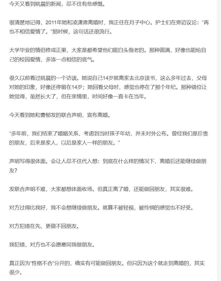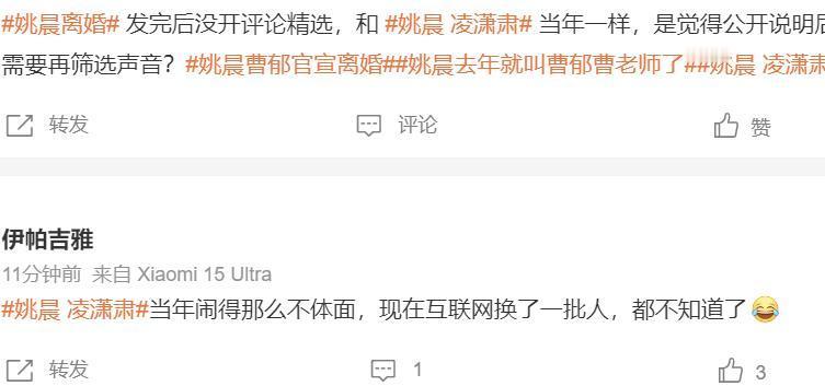 不知道2026年3月16日,唐一菲释怀没有? 还有人记得当年姚晨与凌潇肃离婚,受伤最重的居然是唐一菲? 是的,那个曾经中戏专业第一的唐一菲,因为姚晨与凌潇肃的事儿,被伤最深,不管是事业还是生活,几乎陷入崩溃的地步。 那么,今天姚晨又一次离婚了,这次离婚可以说给足了对方体面,还表示隐匿离婚多年只为孩子。 肯定,当年的她不会想到当下, 那么,凌潇肃被出轨、唐一菲被网暴就这么过了? 相信,此刻的唐一菲最是意难平吧。