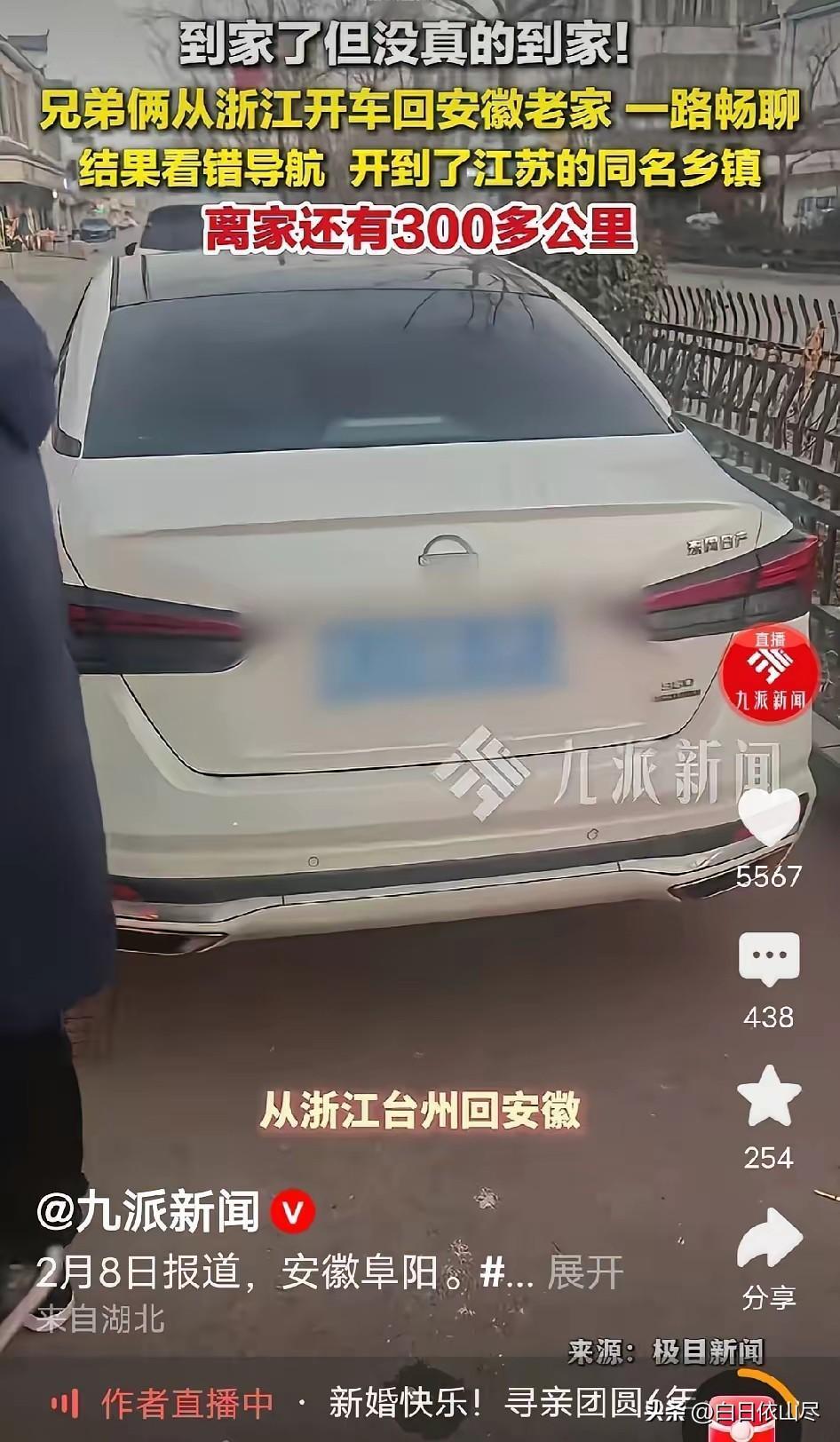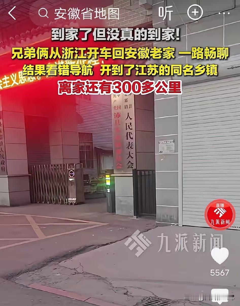 哭笑不得!俩阜阳兄弟自驾回老家朱寨镇过年,一路畅聊没细盯导航,结果到天亮才发现,竟跑到江苏沛县的朱寨镇了,到家了又没完全到家,离家还隔着300多公里,这波操作笑翻全网! 2026年春运期间,浙江台州务工的一对阜阳兄弟,自驾回老家过年却闹出一场全网爆笑的乌龙。两人满心欢喜连夜赶路,本想直奔安徽阜阳阜南县朱寨镇,天亮后才发现,车子稳稳停在江苏徐州沛县的朱寨镇,同名不同地,硬生生多跑300多公里冤枉路。 2月7日晚上9点多,兄弟俩收拾好年货与行李,从台州正式启程返乡。为了分担长途驾驶的疲惫,两人提前商量好轮流开车,前半程由弟弟驾驶,后半程换哥哥接手。 一路上车厢里充满过年的喜悦,两人聊工作、聊家常、聊家里的年夜饭,聊得太过投入,完全没留意路线与沿途路牌。 哥哥刚更换新手机,设置导航时只简单输入“朱寨镇”三个字,看到系统推荐的第一个结果便直接选中,全程没有核对省份与具体区县。 更巧合的是,从台州到安徽朱寨镇、江苏朱寨镇的车程与里程几乎一致,导航显示的时长相差无几,这让两人更没有察觉异常,一路跟着导航向前行驶。 夜色渐深,高速上车辆不多,行驶顺畅,时间在聊天中飞快过去。8日清晨天刚蒙蒙亮,导航语音提示距离目的地仅剩几公里,兄弟俩精神一振,以为马上就能到家吃上热乎饭。 就在这时,弟弟无意间瞥见路边路牌,上面清晰写着“沛县”字样,心里瞬间咯噔一下。 沛县属于江苏徐州,而自己的老家在安徽阜阳,返乡路线根本不会经过这里。 两人慌忙停车核对导航终点,屏幕上明确显示为江苏徐州沛县朱寨镇,而他们真正的目的地,是安徽阜阳阜南县朱寨镇。 一字不差的镇名,让两人连夜奔波的路程全部跑偏,到家了又没完全到家,真实的家还在300多公里之外。 短暂懵圈后,兄弟俩又好气又好笑,只能调整导航重新出发。从江苏朱寨镇到安徽朱寨镇,全程309公里,高速行驶需要近4小时,原本的返乡路被彻底拉长。 两人不敢再分心,专注盯着路线,一路疾驰赶往真正的老家,直到当天下午才顺利抵达。 这段哭笑不得的经历被弟弟拍成视频发到网上,瞬间引爆全网,评论区笑成一片。网友们纷纷留言调侃,有人说这是全国最冤的返乡路,名字一样命不一样; 有人表示同款经历,导航只搜镇名差点跑错省;还有人打趣,这波操作堪称春运年度搞笑名场面,建议所有自驾返乡的人核对清楚目的地再出发。 不少自驾返乡的网友感同身受,提醒大家春运期间长途驾驶,导航一定要输入完整省市区县,不要只填乡镇名,遇到重名地点最容易出错。 还有网友调侃,兄弟俩这波相当于提前跨省旅游,用300公里冤枉路,给全国网友上了一堂导航安全教育课。 一场小小的导航失误,让原本普通的返乡路变得充满戏剧性。没有危险,没有矛盾,只有让人忍俊不禁的乌龙,也成为这个春节里格外欢乐的一段小插曲。 对此,你们有什么看法,欢迎评论留言~
