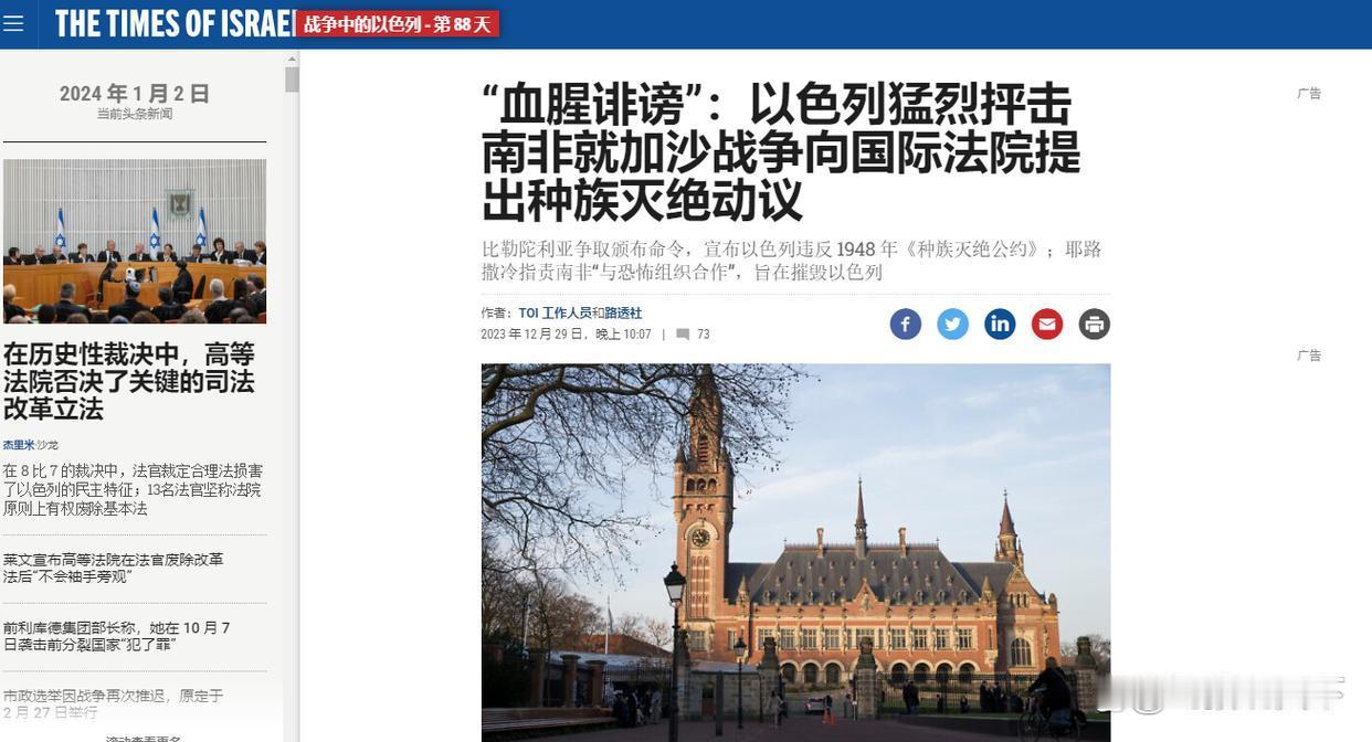 3月17日,据央视新闻直播间报道,近日,以色列政府就南非起诉以色列在加沙实施种族灭绝罪行向国际法院提交书面答辩,南非总统府3月15日发表声明,南非将研究以色列答辩状内容,决定是否请求国际法院允许提交进一步书面材料,或要求直接进入口头审理阶段。 评论,2023牢10月7日巴以冲突爆发,同年12月份,南非将以色列在加沙实施种族灭绝罪行起诉国际法院,随后又有土耳其、古巴等8个国家加入南非起诉以色列在加沙实施种族灭绝罪行队伍里。 由于美国阻挠、干预、施压、威胁、甚至使用暗杀行动阻止起诉以色列诉讼案件进程,4年了,以色列总理内塔尼亚胡刽子手逍遥法外,应该将以色列总理内塔尼亚胡刽子手绳之以法,处绞刑灭九族,也是对以色列总理内塔尼亚胡屠杀加沙人民9万人的回报。