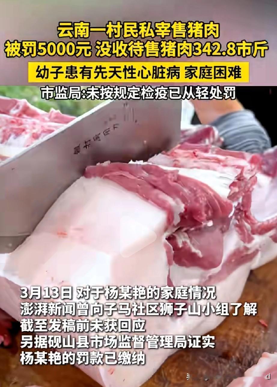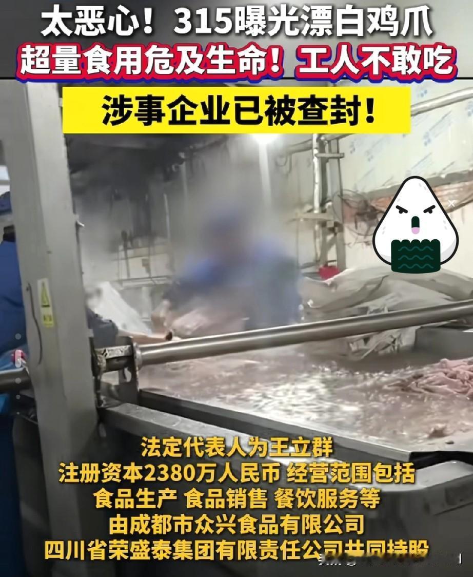 同样是食品安全:一个为钱投毒,一个为活违规,看完让人五味杂陈 民以食为天,食以安为先。当“漂白鸡爪”的黑心工厂与“私宰猪肉”的困难农户同时出现在我们视野里,两起截然不同的食品安全事件,却撕开了同一张餐桌背后的复杂真相——一边是利欲熏心的“投毒式牟利”,一边是走投无路的“生存式违规”,看完让人五味杂陈。 一、为钱投毒:用“漂白”换利润,拿人命当儿戏 315晚会曝光的成都市众兴食品有限公司,为了让鸡爪卖相更白净、更受市场欢迎,竟用工业级漂白剂对产品进行浸泡处理。这些超量添加的化学物质,会严重损害人体消化系统,长期或过量食用甚至会直接危及生命,连车间里的工人都不敢碰自己生产的产品。 这早已不是简单的“食品不合格”,而是赤裸裸的食品投毒。企业经营者为了追逐眼前利益,不惜将消费者的健康踩在脚下,用“洁白”的外表掩盖肮脏的生产真相。这种行为突破了商业道德的底线,更触碰了《食品安全法》的红线,涉事企业被查封、责任人被追责,是法治社会的必然结果。它用最残酷的方式警示所有食品从业者:食品安全不是生意,而是人命关天的责任,任何试图用化学药剂“美化”食品的行为,最终都会付出沉重的代价。 二、为活违规:为补贴家用,在规则与生存间挣扎 另一边,云南砚山县的杨某艳,因为幼子患有先天性心脏病,家庭经济陷入困境,不得不私宰自家生猪售卖,却因未按规定检疫被罚款5000元,342.8市斤待售猪肉也被全部没收。当地市监局表示,已充分考虑其家庭困难情况,对其作出了从轻处罚。 这起事件让人看得心头沉重:对杨某艳来说,售卖自家猪肉或许是她能想到的、补贴家用的唯一出路;但对公共安全而言,未经检疫的猪肉可能携带猪瘟、沙门氏菌等致病菌,一旦流入市场,会给更多家庭带来健康风险。一边是生存的重压,一边是刚性的规则,她的“违规”,本质上是底层家庭在生活困境下的无奈选择。 这也让我们不得不思考:食品安全的规则是冰冷的,但执法的温度可以是柔软的。对困难群体而言,单纯的罚款与没收,或许能守住一时的安全底线,却无法解决他们的生存难题。只有完善社会救助体系、拓宽增收渠道,才能从根源上减少“生活所迫式违规”,让法律既有力度,也有温度。 三、五味杂陈:食品安全的两面,拷问我们的良知与治理 两起事件看似毫无关联,却共同指向了同一个核心:食品安全从来不是非黑即白的选择题,而是需要兼顾底线与温度的民生工程。 - 对恶意牟利者:必须“零容忍”。像“漂白鸡爪”这样的投毒式生产,是对公众健康的公然挑衅,唯有重罚重判,才能震慑不法分子,守住餐桌安全的最后防线。 - 对生存困境者:需要“多帮扶”。对杨某艳这样的困难农户,执法部门在坚守规则的同时,更应联动民政、妇联等部门,为其提供医疗救助、就业帮扶,让他们不必再为了生计触碰法律红线。 - 对我们每个人:要擦亮双眼。拒绝购买来源不明、外观异常的食品,发现问题及时举报,既是保护自己,也是在参与构建更安全的食品环境。 舌尖上的安全,从来都不只是监管部门的事,它关乎每一个人的健康,也关乎整个社会的信任与温度。当“为钱投毒”的恶与“为活违规”的难同时出现,我们更应清醒:既要对黑心企业绝不姑息,也要对困难群体多一份共情与帮扶,唯有如此,才能让我们的餐桌真正安全,温暖。