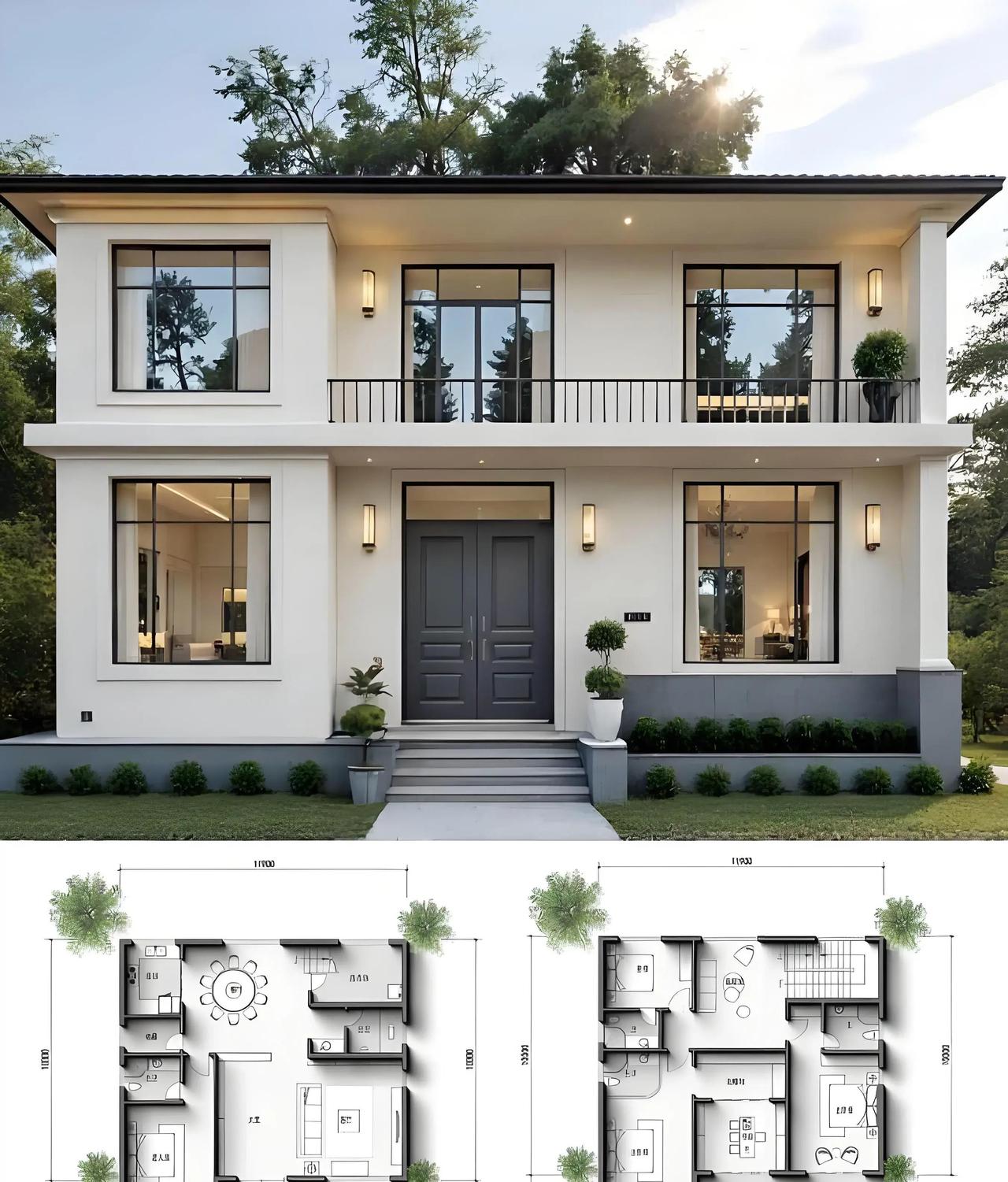 2025年农村自建房热潮中,一套米白配深灰的两层现代简约别墅,直接把“丑到劝退”和“住着真香”拉开巨大反差。 外观用米白墙体撞深灰线条,干净利落没有一丝多余装饰,大面积落地窗从一层直通二层,阳光直接灌进每个角落,彻底告别传统自建房黑乎乎采光差的老毛病。 一层公共区把玄关、客厅、餐厅、厨房串联成一条顺畅动线,楼梯放在正中间不占额外面积,还留出一间带独立卫生间的卧室,老人或客人来住都不用爬楼,起居方便到不行。 二层直接变身私密领地,多间卧室加上独立起居室或书房,每个空间都配独立卫生间,动静分离做得彻底,孩子学习、大人休息互不打扰,多代同堂也自在。 最绝的是整体格局方正到极致,没有一丝浪费,一层热闹、二层安静,公共区和私密区像被无形墙隔开,住进去后那种井井有条的舒适感特别强。 近两年数据显示,现代简约风格在自建别墅中占比已超60%,核心原因就在于大开窗+动静分区这两个硬核设计。相比过去常见的欧式繁复或中式大屋檐,这种风格造价可控、后期维护简单,通风采光却直接拉满,居住体验完全碾压传统户型。 尤其在当下土地资源紧张的环境里,这种方正通透的布局最大化利用每一平米空间,既实用又高级,难怪越来越多家庭把它当成自建房的首选模板。住过的人都说:外观看着冷,里面却暖得让人不想出门