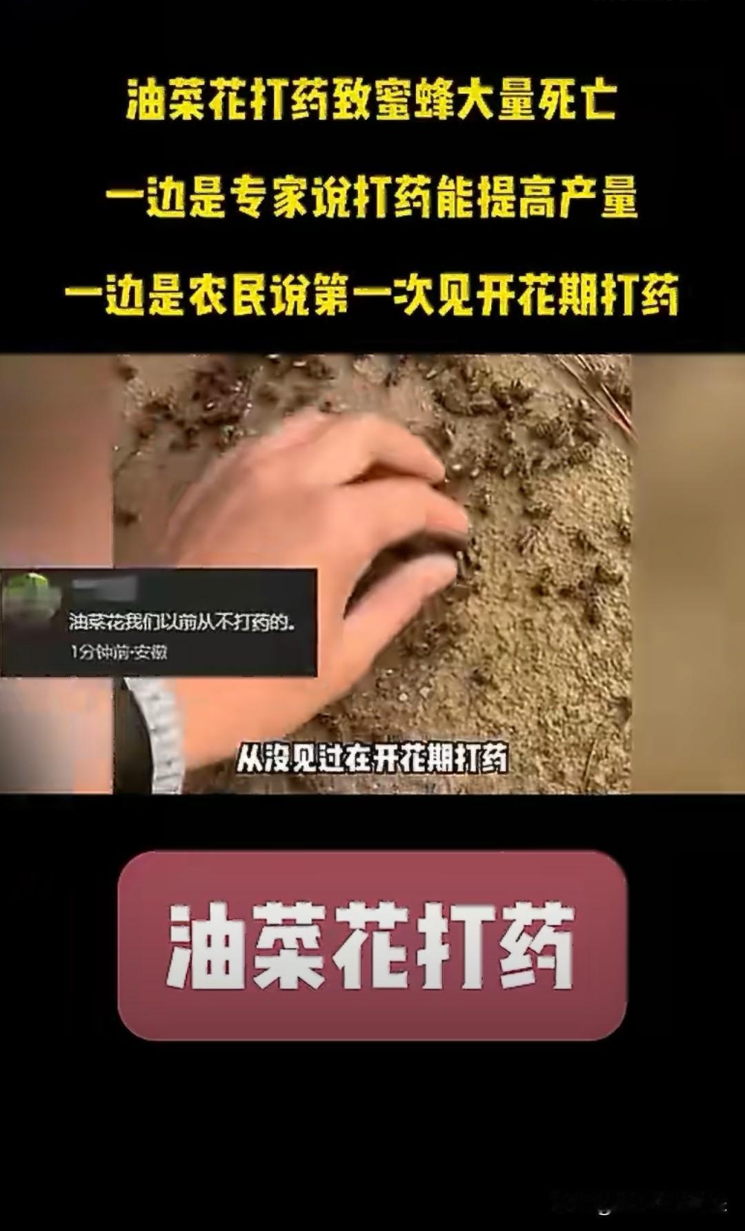提出给油菜花打药的“专家”怕是没种过地吧?刷到不少视频,看到用无人机给正在开花的油菜花喷洒农药,网友说提出打药的正是某“专家”周某某,可看了周某教授研究的领域,是水稻水分生理学,但他却说给油菜花喷洒药能提高产量。 这也导致无数只正在授粉的蜂蜜,离奇死亡。 另一边种地的农民也惊讶称,第一次见到开花期给油菜花喷洒农药的。 你怎么看?