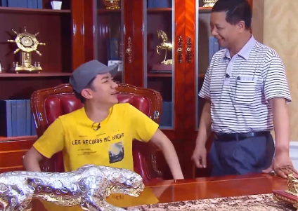 香港明星王祖蓝回家乡东莞探亲 来到厚街舅舅开的家具厂展厅办公室,他对坐在老板椅上的舅舅说:你起来一下,让一让 然后,他就马上坐到老板椅上,说:我坐了你的位置,这样我就不用努力了 他舅舅说:你坐了我的位置,把我的福气也带起来了 我八十代开始摆地摊卖家具,那时候租一间房子请几个人就可以开厂,投资一万几千元,做的是便宜简单的家具,后来改革开放人们赚到钱了,造大房子买好家具,我就越做越大,才有了今天这样的规模 王祖蓝:估不到我的亲戚这么厉害,我也要马上赚钱买个大房子了