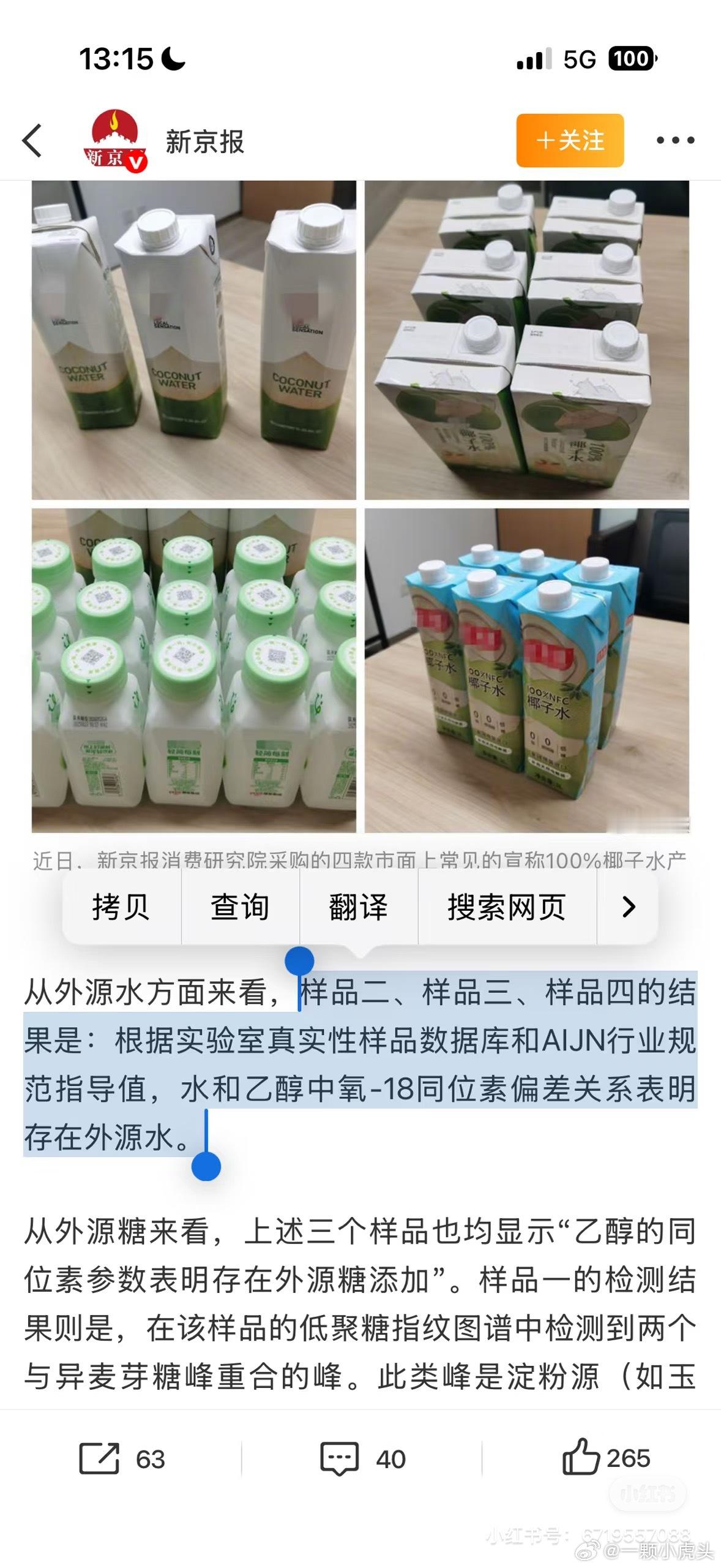 315最冤的品牌出现了!if椰子水无妄之灾了,太出名也是错!原爆料报道里只有样品一的if没有检测出外源水!报道里说的是,样品二,样品三,样品四有问题!图片把if排在一起好多人都误导了!if椰子水前几天也出了声明,检测报告完全没有问题。