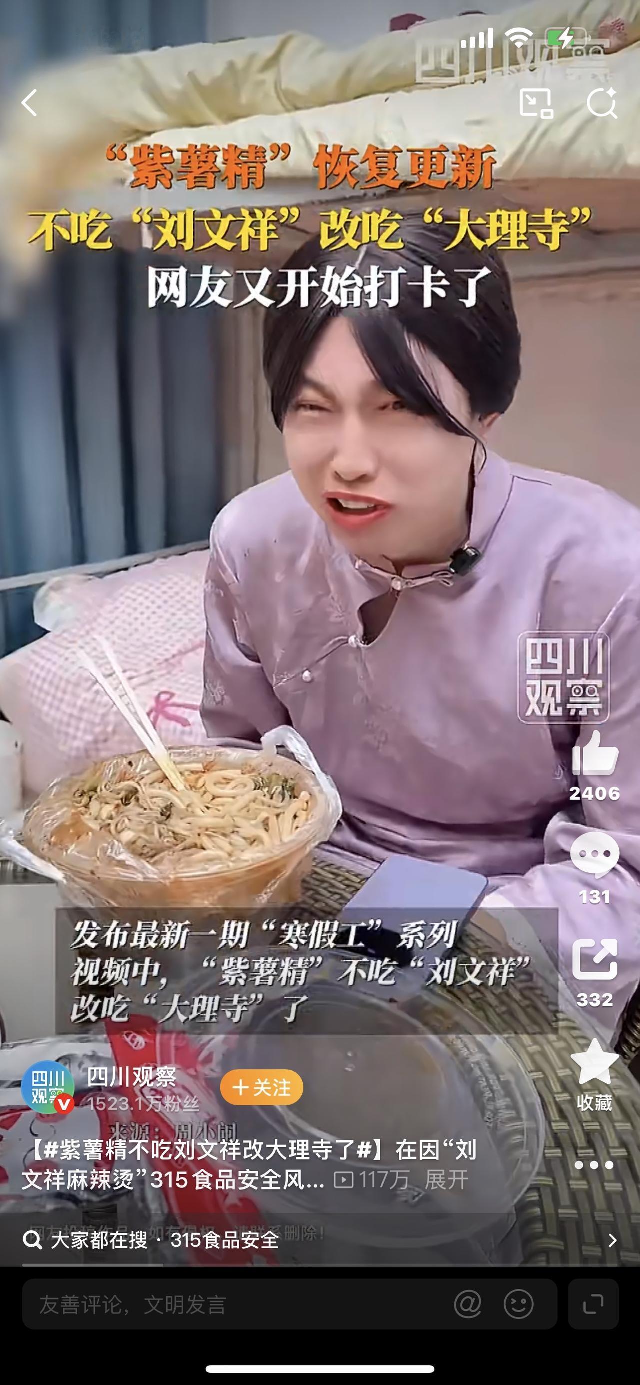 炸锅!紫薯精不吃刘文祥改大理寺了,全网笑疯:这波反转太解气! 谁能想到,一句“全世界指责你,我带你吃刘文祥”火遍全网的紫薯精,一夜之间竟“移情别恋”!前几天还把刘文祥当成精神支柱,如今直接官宣改吃大理寺,话题刷屏热搜,网友直呼:剧情比电视剧还刺激! 紫薯精凭借魔性台词,硬生生把刘文祥麻辣烫带成顶流,无数打工人跟风打卡,把它当成疲惫生活里的小治愈。可谁料315曝光,刘文祥深陷食材造假、后厨脏乱风波,曾经的白月光瞬间翻车,真心喜欢它的人全都被狠狠背刺。 就在大家以为紫薯精会沉默时,博主直接硬核回应:停更调整后,果断让角色弃刘文祥、投大理寺,台词也改成“来不及哀悼了,现在上车的是大理寺米线”。没有辩解、不甩锅、不护短,用最接地气的方式,站在了消费者这边。 网友玩梗玩到飞起:大理寺连夜升咖、老板快开食品安全会、千万别步后尘!一场塌房风波,变成全民狂欢,背后藏的是大家对食品安全的零容忍,对真诚与底线的认可。 流量再好,不如口碑长久;名气再大,不如安全放心。不管是餐饮品牌,还是内容创作,守住良心与底线,才能走得更远。为紫薯精的清醒点赞,也愿我们都能吃得安心、活得放心刘文祥麻辣烫店 刘文祥火锅店 昆明火爆菌炒饭