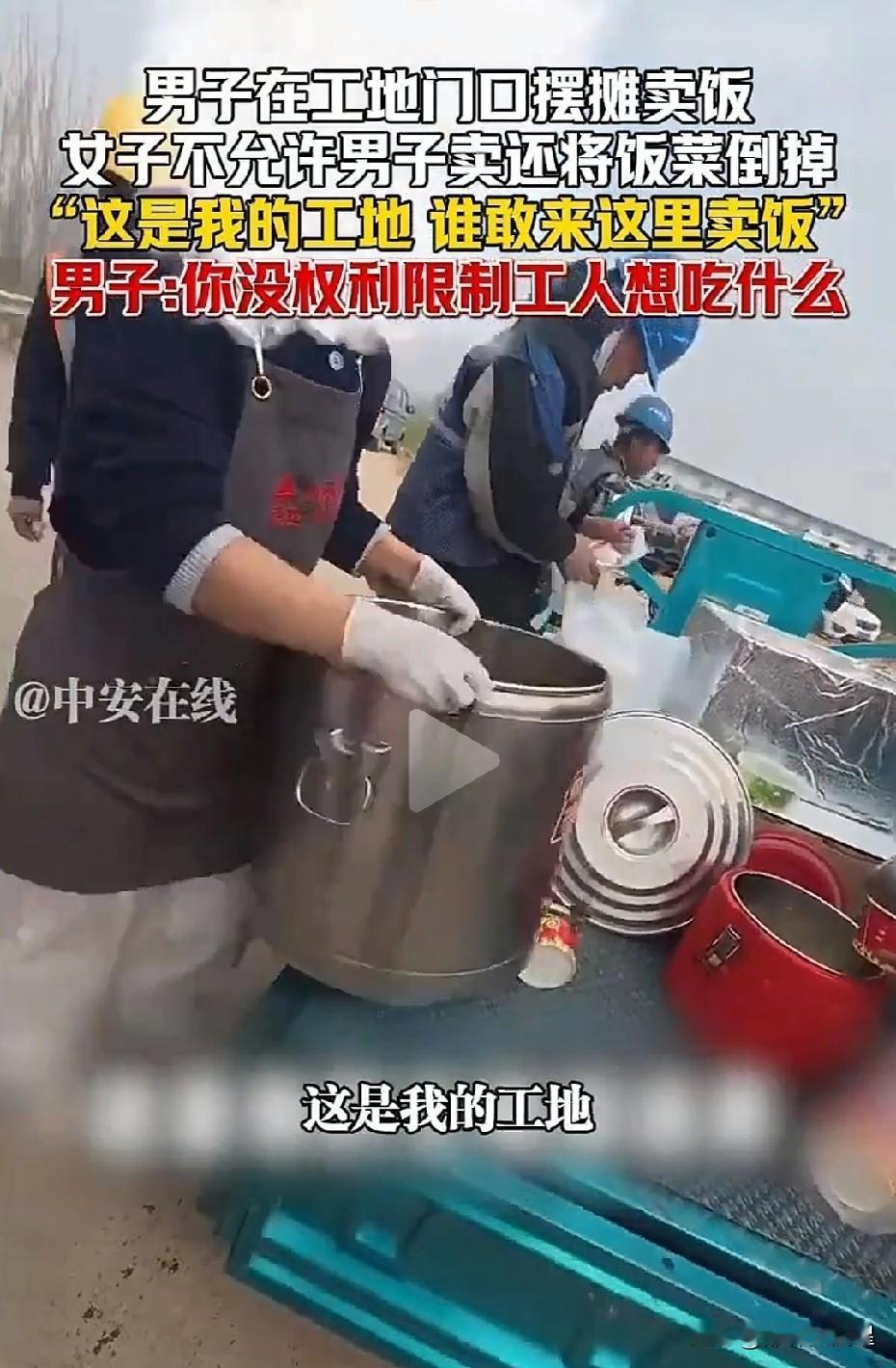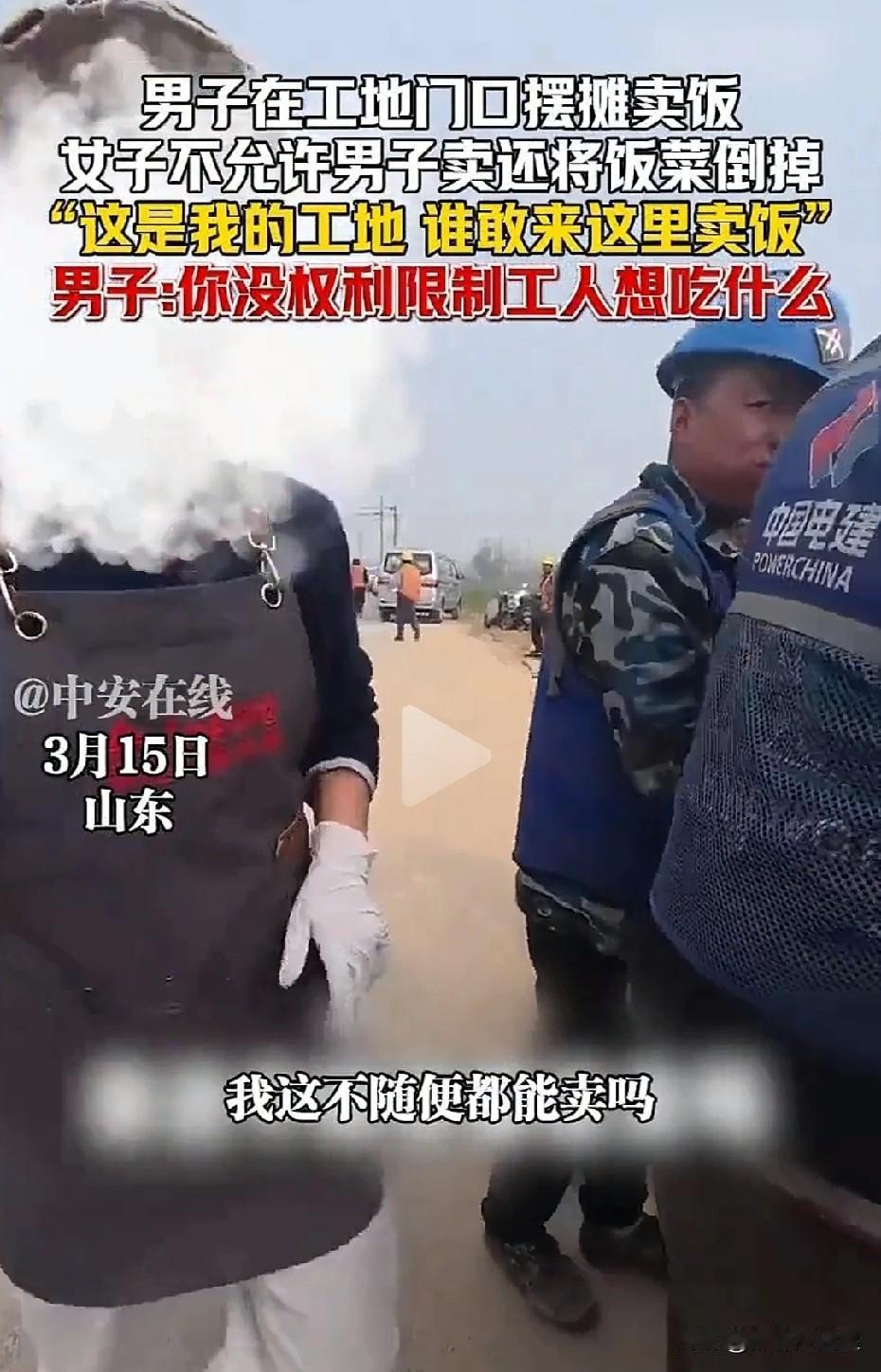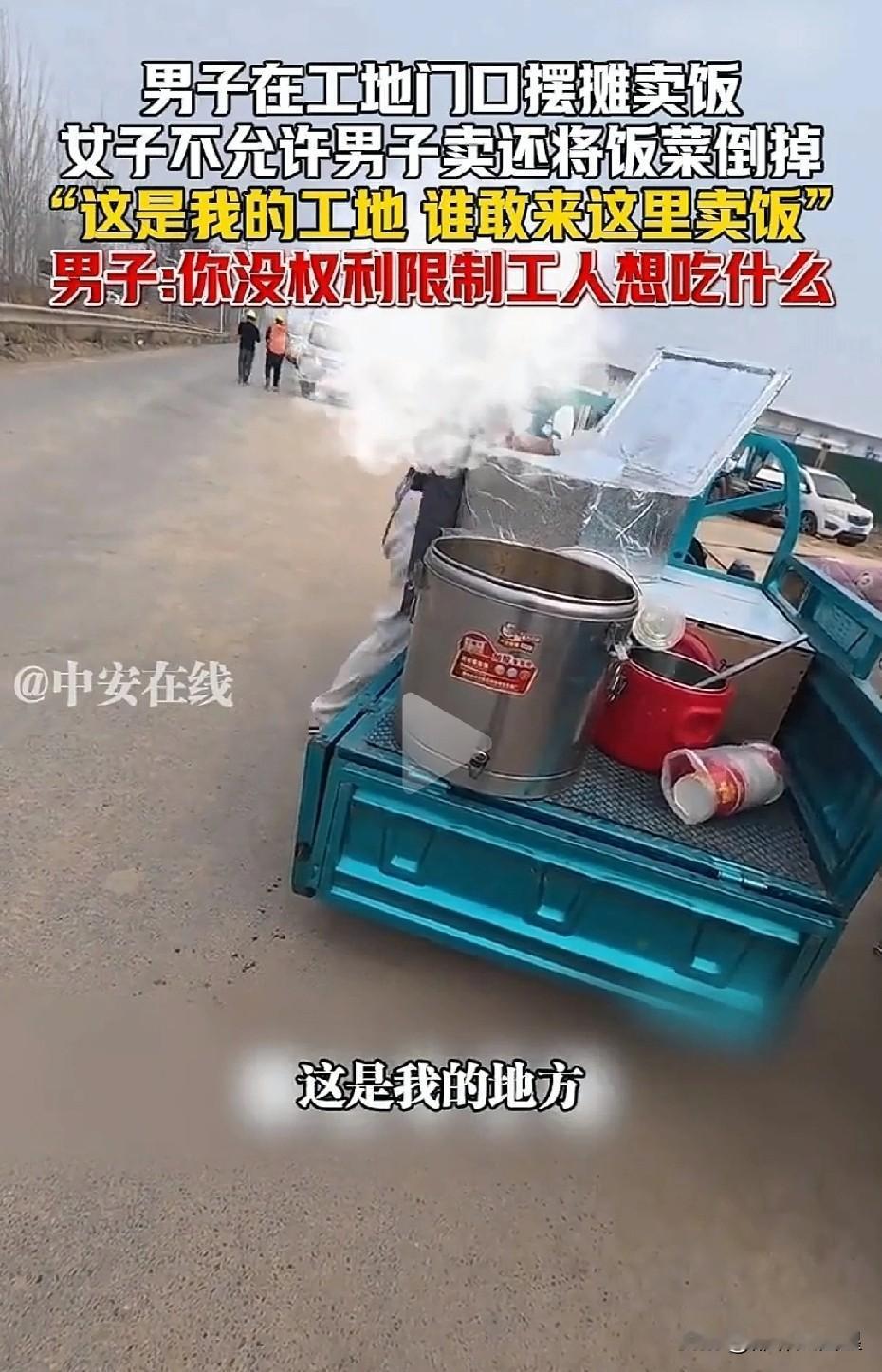 太气人!男子工地门口卖饭,被女子当场掀摊倒饭 据媒体3月15日报道,近日,山东济南,一名00后小伙在工地门口卖10元管饱的卤肉饭,方便工人吃饭,价格也实在。 结果一名女子冲过来,嚣张驱赶,还直接把满满一锅红烧肉全部倒掉,声称“这是我的地方,你不能在这卖”。 好在小伙全程录像,事后把视频发在网上,并报警处理。 这件事在网传播后,引起网友们热议。 有网友说,太霸道了!这是公共场所,又不是你家地盘,凭什么不让人家卖? 还有网友说,太欺负人了!小伙子卖饭挣钱容易吗?必须得赔偿! 也有网友表示,也许是女子承包了工地食堂,小伙子卖了饭不就影响了女子卖饭吗? 民警接警后经查,女子根本没有任何承包权和独家经营权,纯属无理霸道。 最终女子道歉,并全额赔偿损失。 对此,大家怎么看?