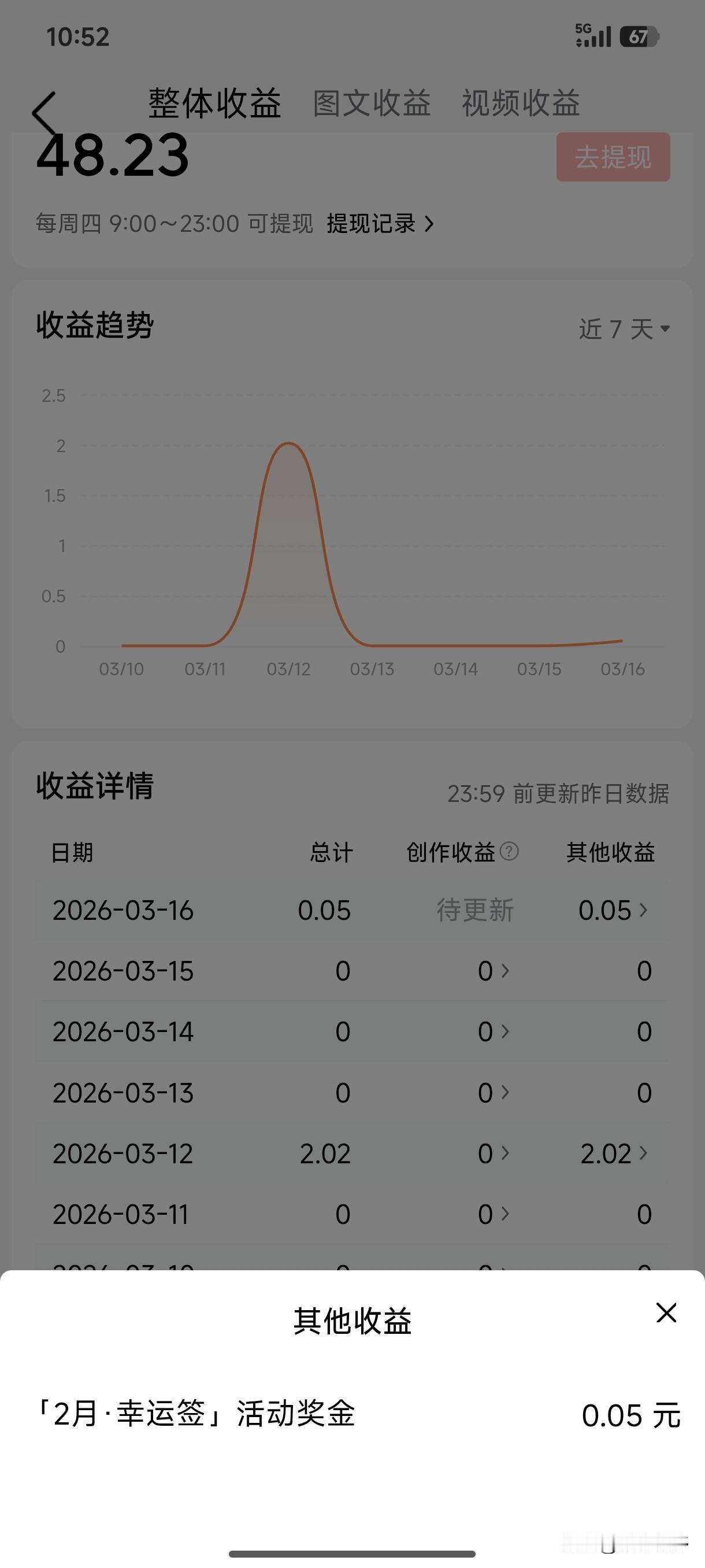 头条上看广告也可以赚钱!最近喜欢上了在头条上看广告,因为我发现看广告赚的金币比看新闻多了好多倍,阅读新闻3分钟才16金币,而看一则40秒的广告一般情况有1000——1500金币甚至更多。这个星期天我看广告收益4元! 我头条上写作几年了,最初还行一天可以赚个8分1毛的,如今基本上没了收益,仅靠参加活动赚点可怜的瓜分奖。我觉得写头条不如捡水瓶子了,捡个水瓶子也能卖几分钱,我都有想去拾荒的想法。 发现工友在头条上看广告,我问他为何爱看广告,他告诉我看广告金币多赚的钱多。一语点醒梦中人,我晃然大悟,这不摆在前钱的赚钱方法吗。 现在我热衷于看广告了,虽然收益是分分钱,但这比写头条强多了,因为我就想多赚点钱来补贴生活。