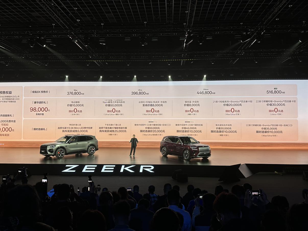 极氪8X曜影版发布,全球首款三电机兆瓦电驱混动SUV,综合功率1030kW(超1400匹马力),零百加速2.96秒(馈电状态3.18秒),成为混动领域性能标杆。 支持6C超快充,常温下20%-80%电量补能仅需9分钟,零下30℃极寒环境也仅需10分钟,彻底解决新能源车冬季补能焦虑。 70kWh电池包提供CLTC纯电续航410km,满油满电综合续航达1416km,满足一周城市通勤或长途穿越需求。 搭载闭式双腔空气悬架+双阀CCD电磁减振器,配合行业首创的主动稳定杆,0.2秒内响应爆胎等突发状况,实现高速自主靠边停车。 双电机版:Max版37.68万、Ultra版39.68万、Ultra+版44.68万; 三电机曜影版51.68万(专属碳纤维套件/315宽胎/Brembo六活塞卡钳)。【来自懂车帝车友圈】