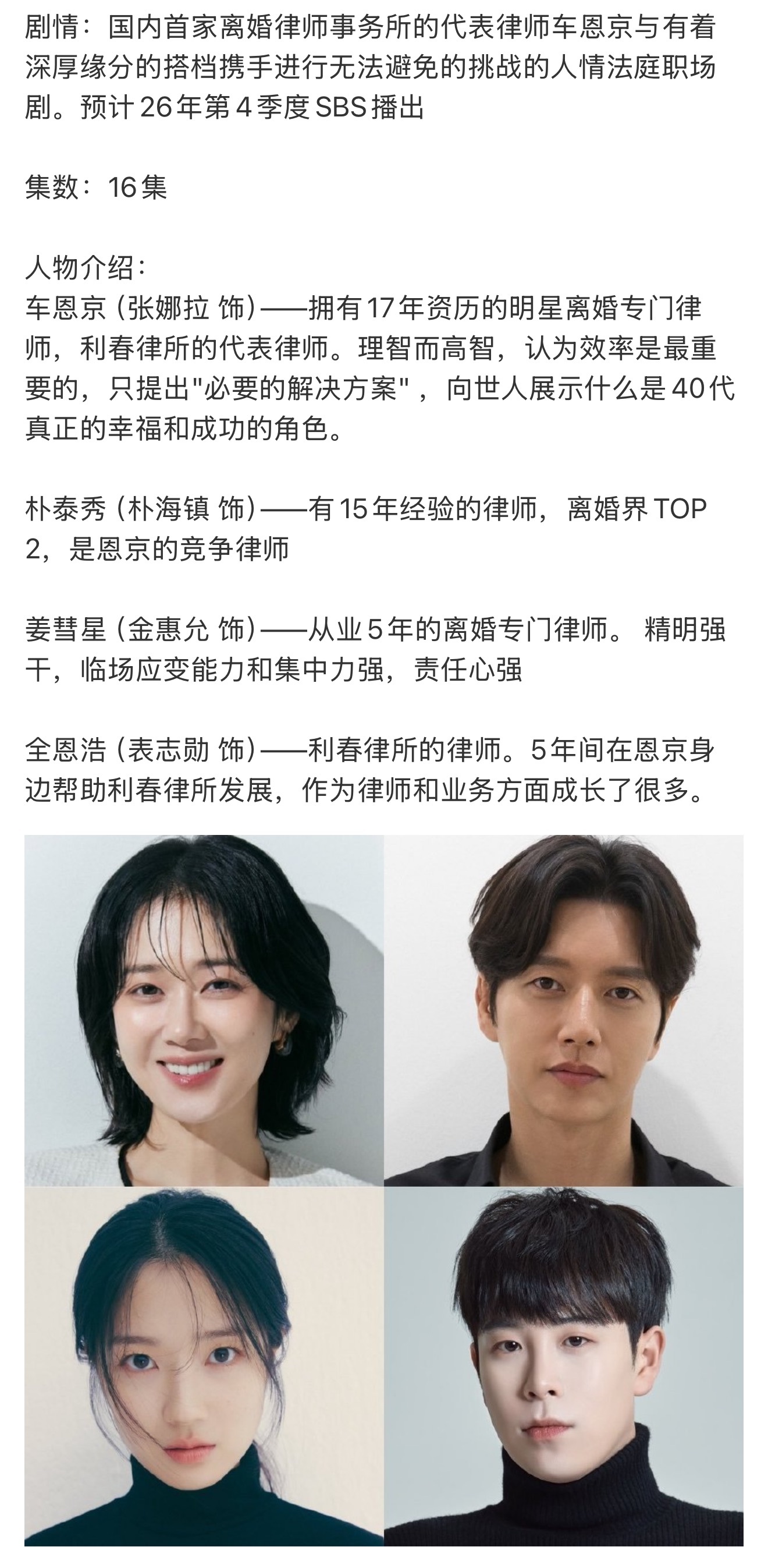 第2季预计今年4月初开拍,拍摄5~6个月今年第4季度SBS播出