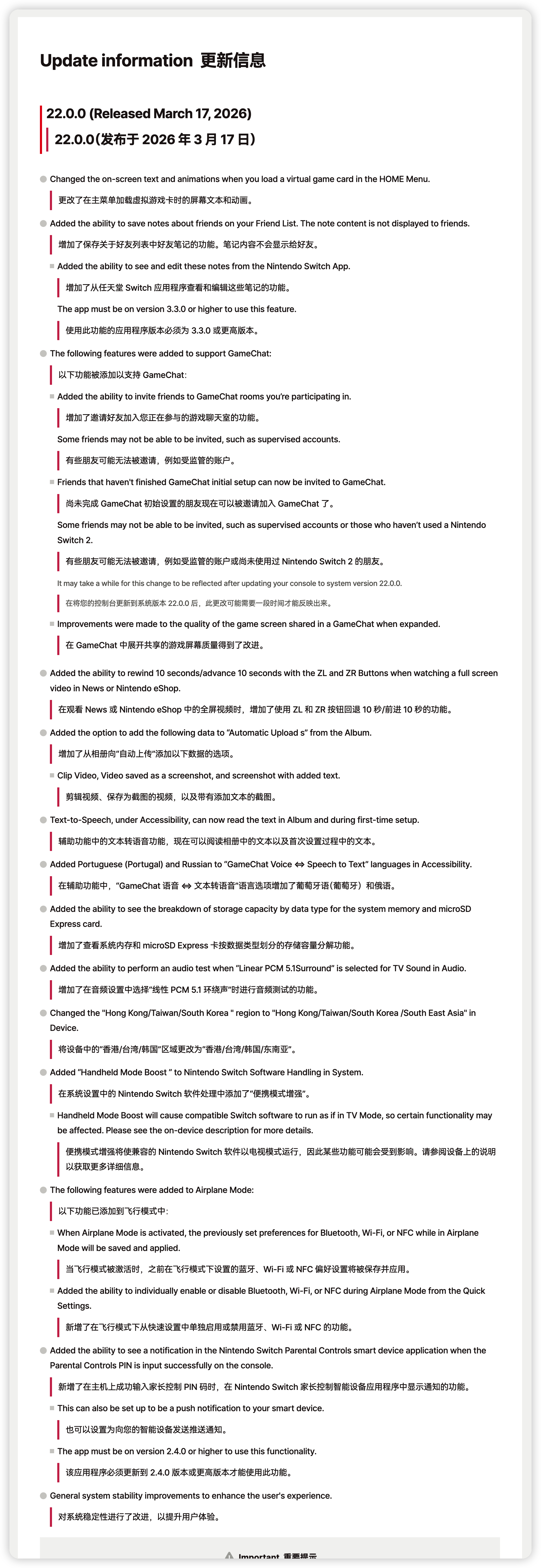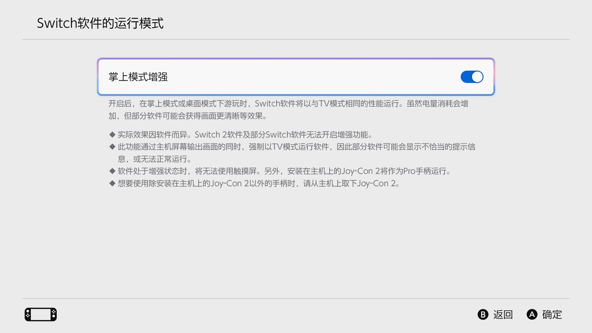 NintendoSwitch2史诗级更新 今天任天堂刚给 Switch2 更了 22.0.0 版本系统。最核心的是新增了掌上模式增强,兼容的老游戏在掌机、桌面模式下,能直接跑 TV 模式的性能,像旷野之息、奥德赛这些经典作,画质和帧率都有明显提升。