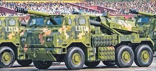 对比一下中间图片的解放军陆军现役PCL-181型155毫米车载加榴炮,以及右图的