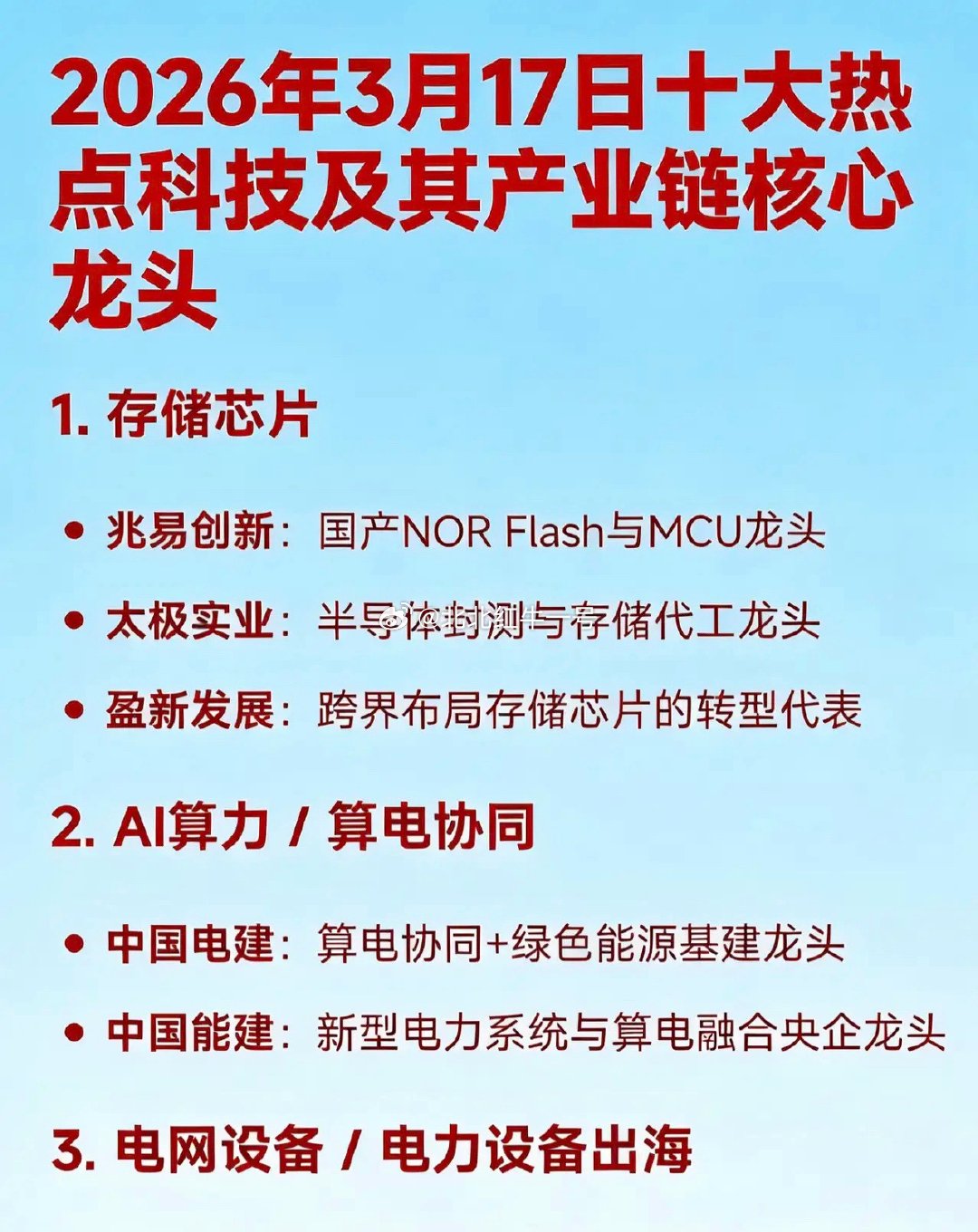 2026年3月17日十大热点科技及其产业链核心龙头