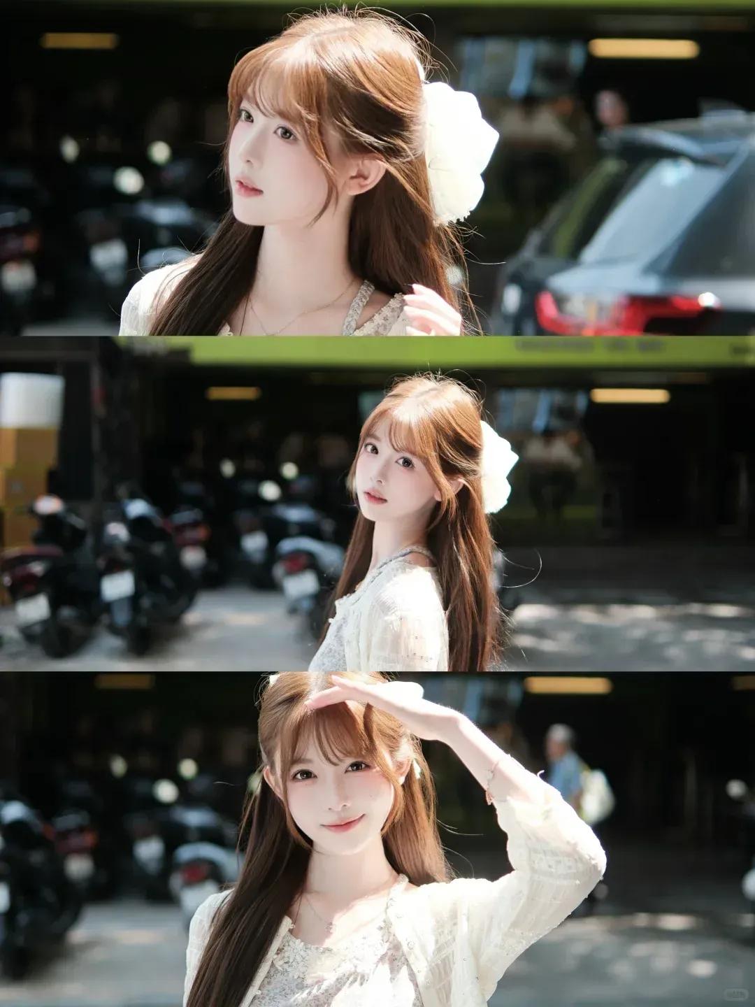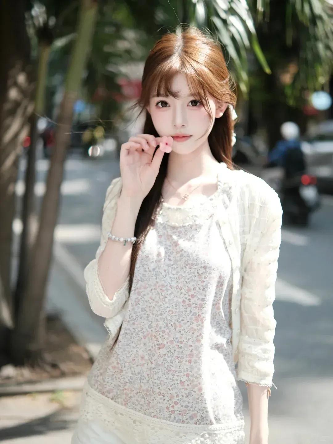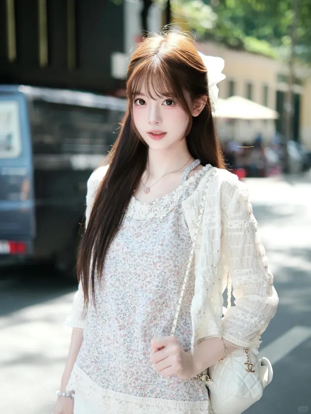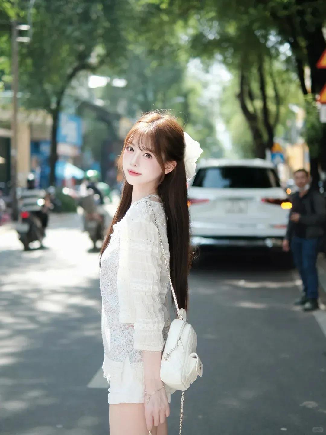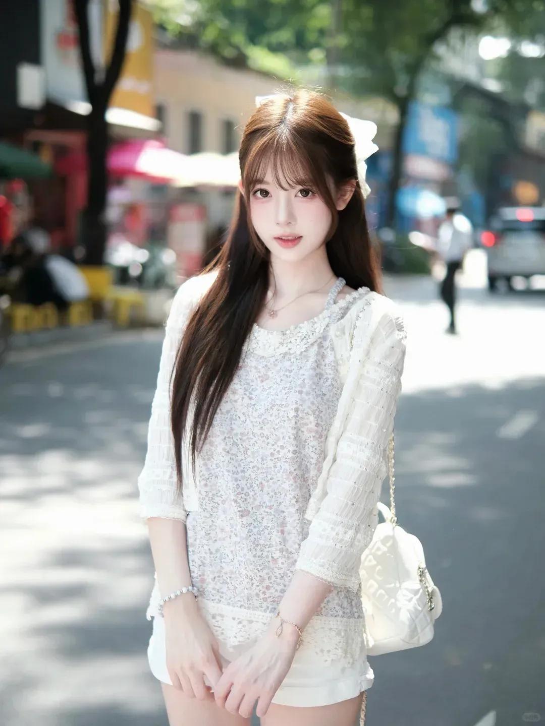 分享美女穿搭服饰白衫甜妹的街头温柔时间美女的魅力能有多大?