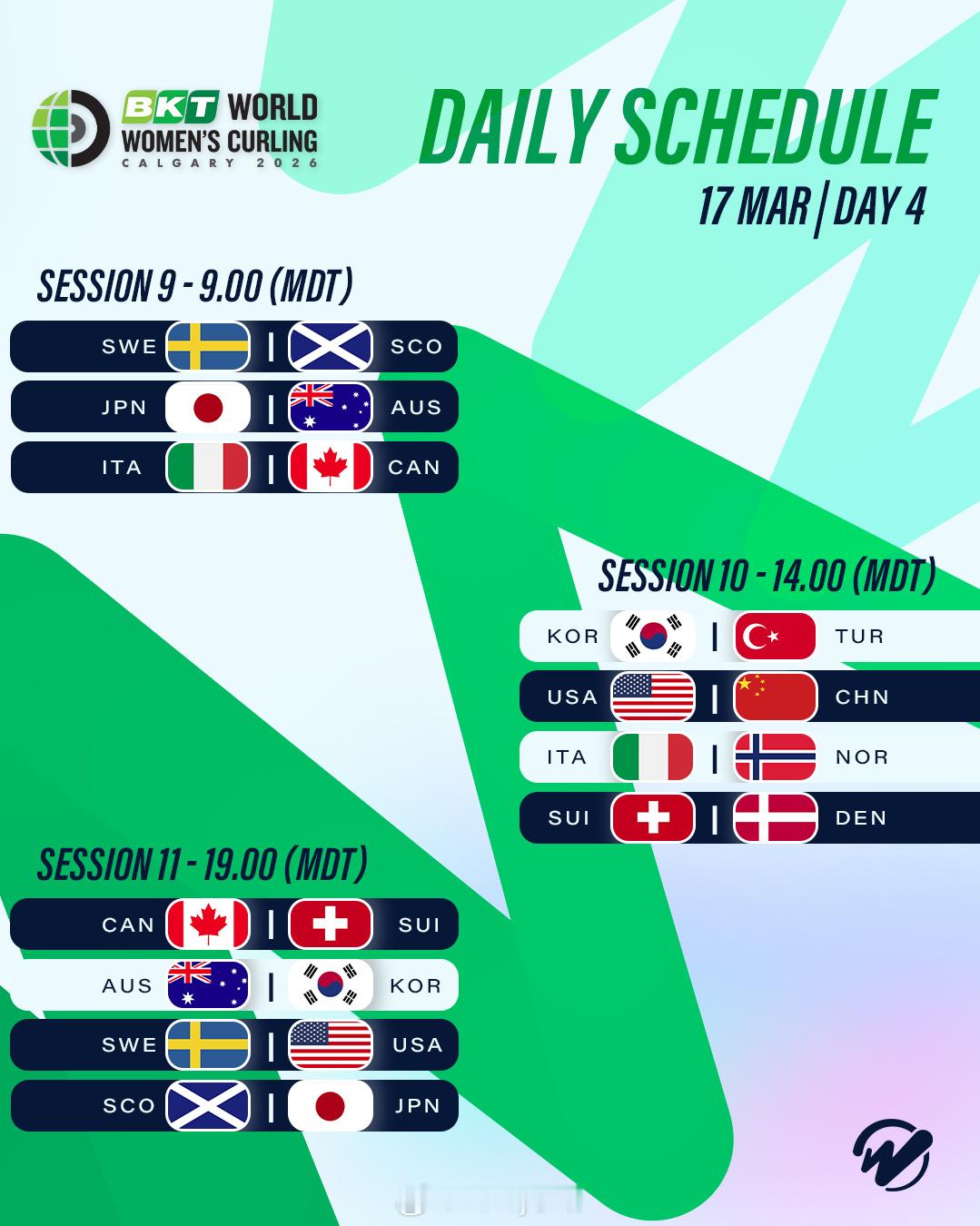 2026女子冰壶世锦赛第三比赛日后积分榜排名中国队以2胜3负暂时排名第7冰壶世锦