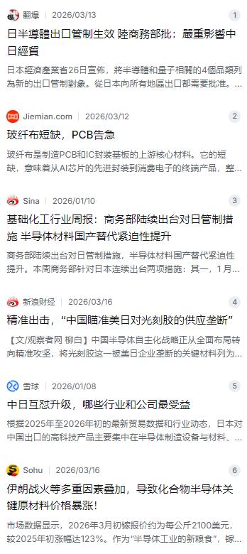 后悔为时已晚?日本拉黑110家中企、停供芯片原料,中方反制却更快,本以为老美卡咱们光刻机脖子已经够绝,没想到日本跳出来下死手,而且招招都往中国芯片的命脉上捅。 麻烦看官老爷们右上角点击一下“关注”,既方便您进行讨论和分享,又能给您带来更多优质的内容,感谢您的支持! 日本这回确实下了狠手,直接把110家中国公司拉进了“黑名单”,切断芯片原料供应。本以为这一招能掐住咱们的脖子,没想到中方的反制来得更快更准——商务部在同月就出手了,目标直指美日几家核心设备巨头。这事儿乍一看是日本在跟风美国卡脖子,但仔细扒开看,这里面门道挺多,咱们这回还真不是被动挨打。 先说日本那边干了啥。去年4月底,日本经济产业省正式修改外汇法令,把半导体和量子计算相关的23个品类列入了出口管制清单。别看这个数字不大,这23类东西全是高精尖的设备跟材料,比如芯片制造缺不了的光刻胶、高纯氟化氢,还有那种用来造先进封装基板的低膨胀玻纤布。日本在这些领域的市场份额高得吓人,像高端光刻胶,日本企业信越化学、JSR几家加起来占了全球差不多九成;还有一种用在AI芯片封装里的玻纤布,日本日东纺一家就握着全球90%的供应量。这相当于什么?相当于你盖房子最关键的钢筋水泥,货源被人捏死了。而且日本这回玩的是“无差别打击”,不像以前只盯着特定国家,这次是从日本出口到哪儿都得先报批,摆明了是配合美国那套“小院高墙”的战略,想把咱们的先进制程能力彻底摁住。 按照常理,这招确实够损。咱们的芯片产业虽然在设计、封测这些环节起来了,但上游的材料和设备一直是短板,特别是那种看着不起眼但技术壁垒极高的耗材,短期内很难完全自己搞定。如果日本真的把供应一断,很多晶圆厂的生产节奏肯定会受影响,有些依赖进口的先进产线甚至可能面临停工风险。 但事情接下来的走向,可能让日本没想到。就在日本宣布管制措施的同一个月,咱们商务部出手了。1月6号,商务部发了个公告,禁止所有“两用物项”对日本军事用户和军事用途出口。这话听起来有点绕,但翻译过来就是:只要是可能用于军事的东西,包括那些关键的材料和技术,日本别想从中国拿到了。紧接着第二天,1月7号,商务部又对原产于日本的二氯二氢硅发起了反倾销调查。二氯二氢硅这玩意儿是芯片制造中薄膜沉积环节必需的东西,日本又是主要供应方。这一套组合拳打下来,意思很明白:你要打,那就打,咱们手头的牌也不少。 更耐人寻味的是“不可靠实体清单”的落地。按照主题里提到的那几个名字,应用材料(美国)和东京电子(日本)这种级别的巨头被盯上,信号极其强烈。应用材料是全球最大的半导体设备商,东京电子在涂胶显影设备领域市场份额一度超过90%。把这些企业列入清单,意味着它们在中国市场的业务会受到严格限制,甚至可能被断掉供应链。这就不是简单的对等了,而是直接动摇了这些巨头的“钱袋子”——中国市场可是它们财报里最亮眼的那块蛋糕。 日本这一刀,确实捅在了咱们过去最疼的地方:上游材料的结构性依赖。但这回有点不一样,因为市场正在发生一个微妙的变化。就在日本收紧管制的这个关口,全球半导体行业却因为AI算力的爆发,陷入了一场史无前例的“材料饥渴”。由于英伟达AI芯片需求太猛,那种用于高端PCB板和封装基板的玻纤布,从2025年下半年开始就严重供不应求,价格涨了又涨,订单排到了半年以后。连英伟达的黄仁勳都被逼得亲自跑到日本去找供应商要产能。在这个节骨眼上,日本还要搞出口管制,等于是在全球缺货的池子里又抽走一桶水。结果是什么?是价格进一步失控,连日本自己的企业也跟着遭殃,因为市场规律不会因为政治管制就失效。 这件事最大的转折点,其实在国内产业链的应变上。过去几年,大家总说国产替代雷声大雨点小,但这次不一样。就在日本磨刀霍霍的时候,国内的材料企业是真的在干活。拿光刻胶来说,以前高端KrF、ArF光刻胶基本是日本企业的禁脔,但现在以徐州博康、南大光电为代表的国内厂商,已经实现了从单体、树脂到光酸的产业链自主化,ArF光刻胶不仅通过了头部晶圆厂的验证,还开始批量供货。再看玻纤布,国内的低介电玻纤布龙头企业,2025年的净利润翻了七八倍,产能全开还是满足不了订单。这不是靠补贴吹出来的,而是真真切切被市场需求逼出来的。 日本这次禁运,短期看是增加了咱们的阵痛,长期看却给国产材料送了一波“神助攻”。以前晶圆厂不愿意轻易换供应商,怕风险,现在外部的供应说断就断,国产的东西虽然可能还有差距,但至少能顶上,而且顶上去之后还有迭代改进的机会。这就是典型的“压力测试”——外部压力越大,内部的国产化进程反而越快。