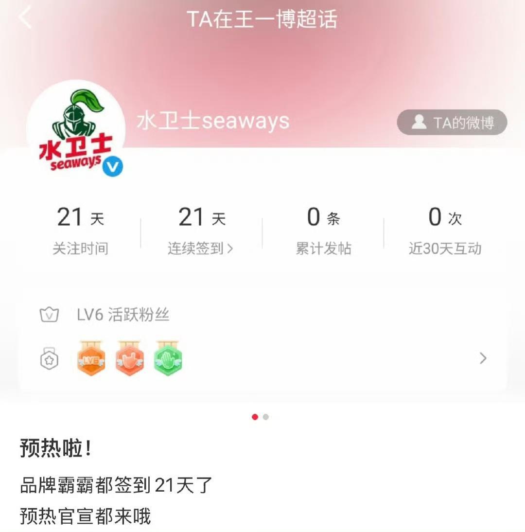 王一博商务新代言又又又来了! 水卫士明天开启预热——3.21正式官宣! 悄悄说一下,其实新霸霸已经偷偷超话签到好多天了[机智]爱,就是这样藏不住滴[笑哭]。 坐等官宣,家务好帮手!