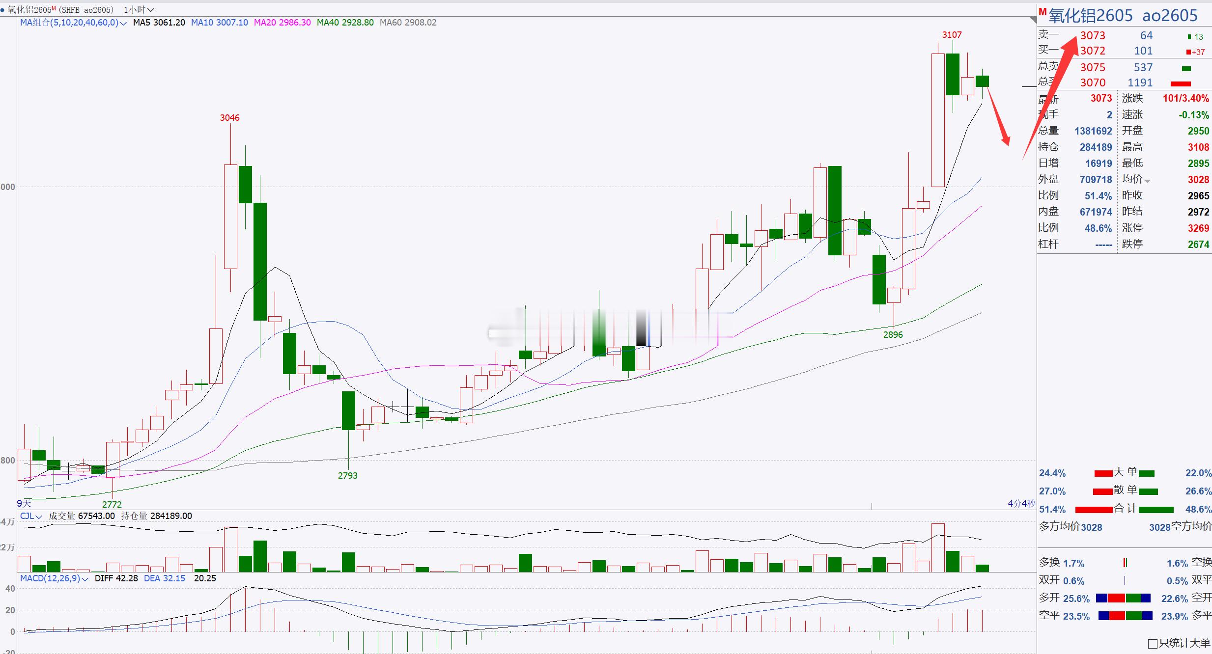 【氧化铝2605】氧化铝关注3000一带,建议回踩偏多!氧化铝日内上行不错,并突破了3000一带,后市重点关注此位置,若此位置企稳,可继续看短期上调,但不过分看空间,建议回踩偏多;稳健者建议先观望;例如多关注3010—2990附近,上方先关注3150附近,突破再关注3200附近;空关注3150、3200这两个位置再择机考虑介入;(建议仅供参考,具体操作以开盘点位实时跟进,据此操作风险自担)氧化铝