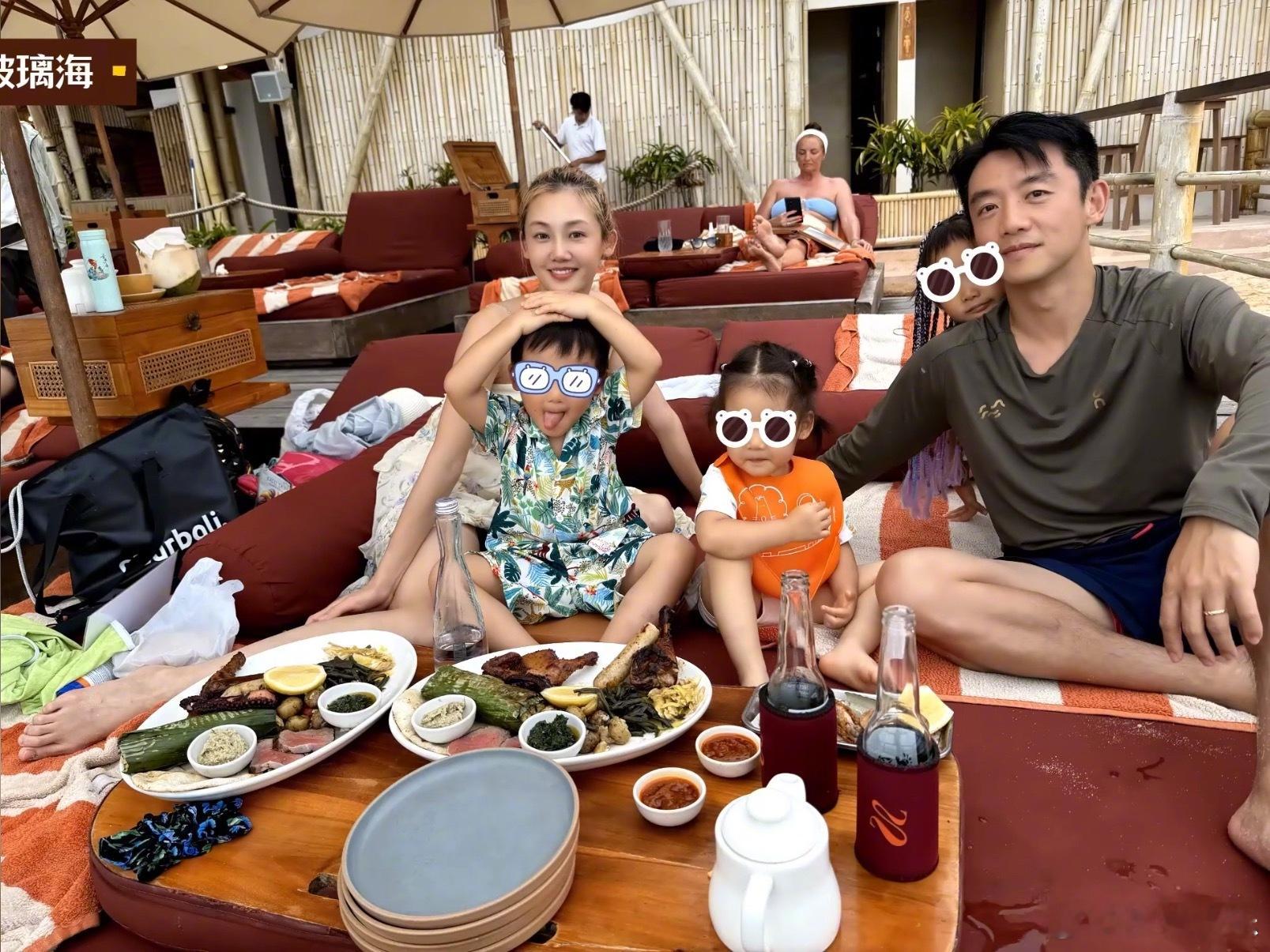 郑恺苗苗一家五口同框 哇,郑恺苗苗发布一家五口在巴厘岛度假的合照,正式官宣了三胎