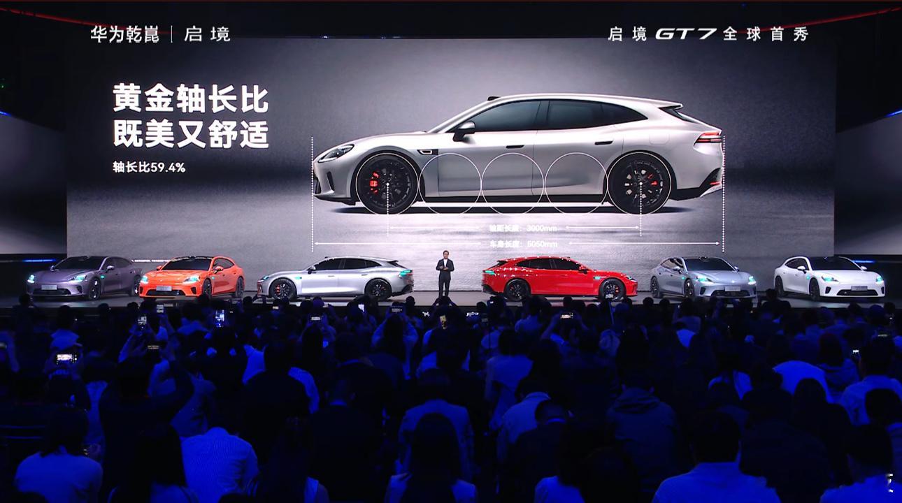 GT7的设计真有点东西:近5米车长、3米轴距、59%轴长比,这比例是真的帅。既保留了猎装的优雅线条,又保证了空间实用性。站在华为和广汽两个巨人肩膀上,这波值得蹲一波。启境汽车华为乾崑新一代智能猎装启境汽车品牌发布会暨GT7首秀