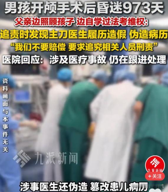 江苏无锡,有个16岁男孩开颅手术后,一昏迷就是973天。谁也没料到,孩子的父亲龚先生,没只顾着悲伤,反倒做了个让人意外的决定。他一边没日没夜照顾昏迷的儿子,一边重新拿起书本自学,最后还顺利通过了法考。原来,他在照顾孩子、查找资料的过程中,发现给儿子主刀的医生履历是假的,卫健委介入调查后,更多让人震惊的真相,也慢慢被揭开了。 973天,整整2年8个月零28天。 在无锡的一间病房里,16岁男孩静静躺着,双眼紧闭,毫无知觉。 守在床边的,是他的父亲龚先生。 没人能想到,这个毕业23年、早已远离书本的中年男人,会在这样的绝境里,硬生生啃下法考的千难万险。 更没人能想到,这场长达973天的昏迷背后,藏着多少刻意隐瞒的猫腻。 2023年7月19日,龚先生的儿子因脑部疾病,在当地一家儿童医院接受开颅手术。 术前,他们特意筛选,选中了一位号称毕业于名校、有20年临床经验的资深专家。 满心盼着手术成功,孩子能早日康复,重返校园,可手术结束,孩子被推出手术室的那一刻,所有期待,瞬间崩塌。 孩子没有醒来,一直处于深度昏迷状态,一躺就是973天。 白天,龚先生守在病床前,喂水、擦身、监测体征,不敢有一丝懈怠。晚上,他拖着疲惫的身躯回家,翻遍所有医疗资料,越查,心里的疑团越大。 医院官网上,那位主刀医生的介绍写得清楚:20多年临床经验,资深专家,名校毕业。 可顺着线索一步步核查,龚先生发现,这些光鲜的履历,全是假的。 所谓的名校毕业,查无实据,20年临床经验,实际从业年限不足10年,连独立开展开颅手术的资质都存疑。 龚先生向卫健委举报,要求彻查此事。 卫健委介入后,更惊人的真相,浮出水面。 涉事医生,竟私自篡改了患儿的病历,龚先生拿出之前复印的病历,和医院提供的新版本逐一比对,发现37处关键细节对不上。 手术时间、术中用药剂量、术后观察记录,多处被篡改、伪造。 很明显,这是有人刻意为之,目的就是掩盖手术中的违规操作。 为了给儿子讨回公道,龚先生做了个惊人的决定:自学法律,通过法考,用法律维权到底。 病房的墙壁上,贴满了法律知识点纸条,每一张都写得密密麻麻。 深夜的病房走廊,灯光昏暗,龚先生坐在长椅上,一边看着病历,一边啃读法律教材。 每天睡眠不足4小时,白天照顾孩子,晚上挑灯夜读,日复一日,从未间断。 2025年,法考成绩公布,龚先生一次性通过,拿到了法律职业资格证书。 没人知道,他背后付出了多少努力,熬过了多少个无眠之夜。 2026年3月16日,距离孩子手术,整整973天。 龚先生带着所有证据,正式报了警,要求追究涉事人员的刑事责任。 面对记者采访,他说得很坚定:不要一分钱赔偿,只想要一个公道。 截至目前,涉事医院仅回应,事件仍在跟进处理,未给出任何实质性进展。 有人说,龚先生太固执,不如接受赔偿,好好照顾孩子。 可只有他知道,儿子的973天昏迷,不是意外,是人为的疏忽与隐瞒。 他的坚持,不是为了钱,是为了昏迷的儿子,是为了不让更多家庭重蹈覆辙。 涉事医生履历造假,会受到什么处罚? 根据《执业医师法》第36条规定,以伪造学历、虚假材料等不正当手段取得医师执业证书的,卫生行政部门有权吊销证书,并对相关责任人追责。 医生伪造名校学历、虚报从业年限,属于典型的以虚假材料取得执业资质,应被吊销执业证书,且2年内不得重新申请注册。 如果造假过程中涉及买卖国家机关证件,还可能构成刑事犯罪,最高可处3年有期徒刑。 医院作为资质审核方,未严格核查医生履历,也需承担连带行政责任。 医生篡改病历的行为,比履历造假更严重! 根据《医疗纠纷预防和处理条例》第十五条、第四十五条规定,任何单位和个人不得篡改、伪造病历资料,医疗机构篡改病历的,对直接责任人给予撤职、开除处分,医务人员吊销执业证书,构成犯罪的追究刑事责任。 更关键的是,根据《民法典》第1222条,医疗机构篡改病历,会直接推定其有过错,无需患者举证。 篡改病历,相当于直接承认自身存在医疗过错,哪怕手术本身有合理风险,也无法免责。 龚先生不要赔偿,只追刑责,是否合理吗? 维权,不一定必须要赔偿。 刑事追责和民事赔偿是两个独立的法律关系,龚先生有权放弃民事赔偿请求,单独要求追究涉事人员的刑事责任。 法院审理时,不会因为其放弃赔偿,就减轻对涉事人员的处罚,反而会结合其维权的合理性,更严谨地认定涉事人员的过错程度,这也是大众容易误解的法律点。 一边是昏迷973天的孩子,一边是艰难的维权之路,龚先生的坚持,值得所有人敬佩。 可这场维权,还要走多久?涉事人员何时才能被依法追责? 您对这件事有什么看法呢?