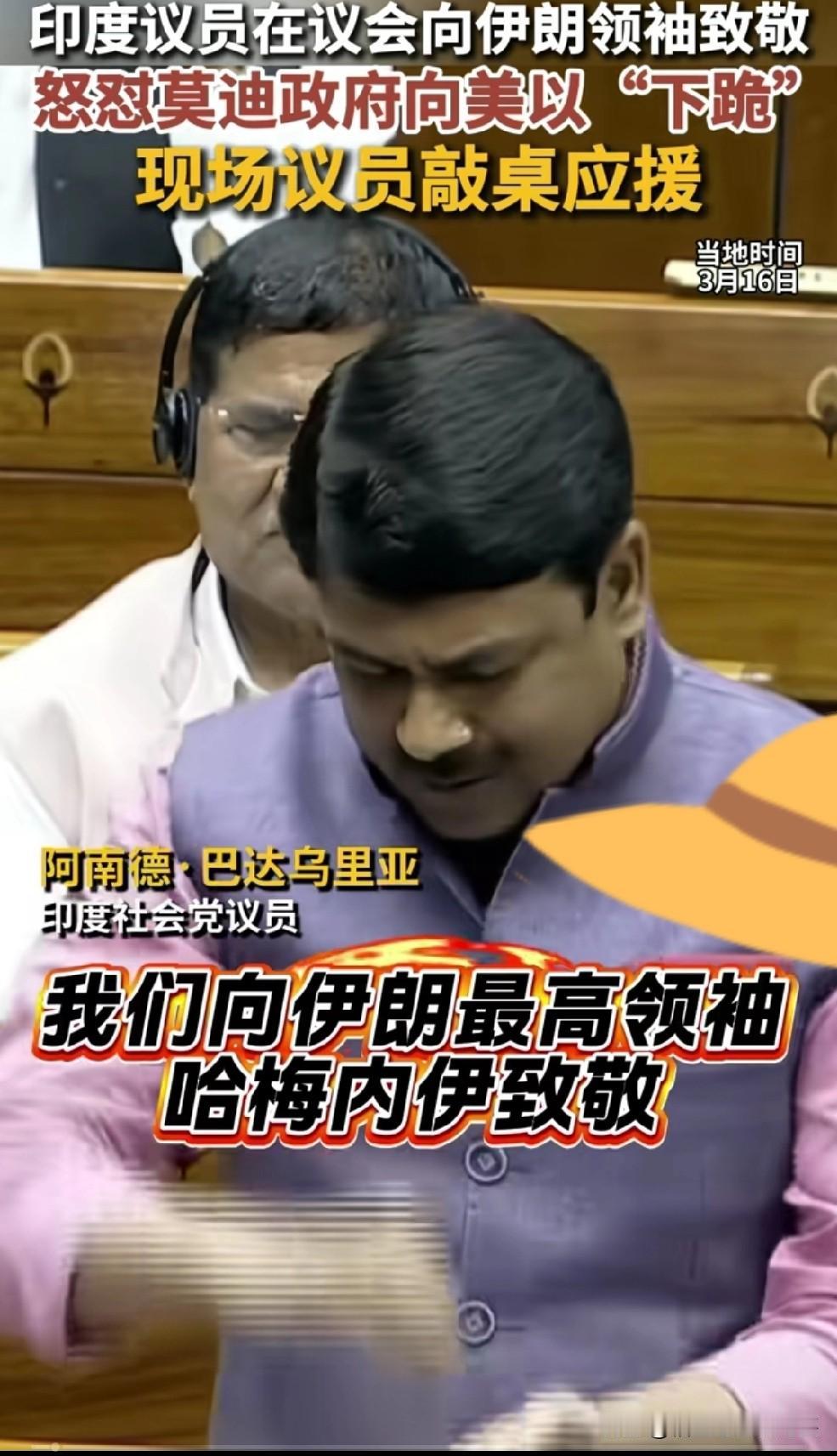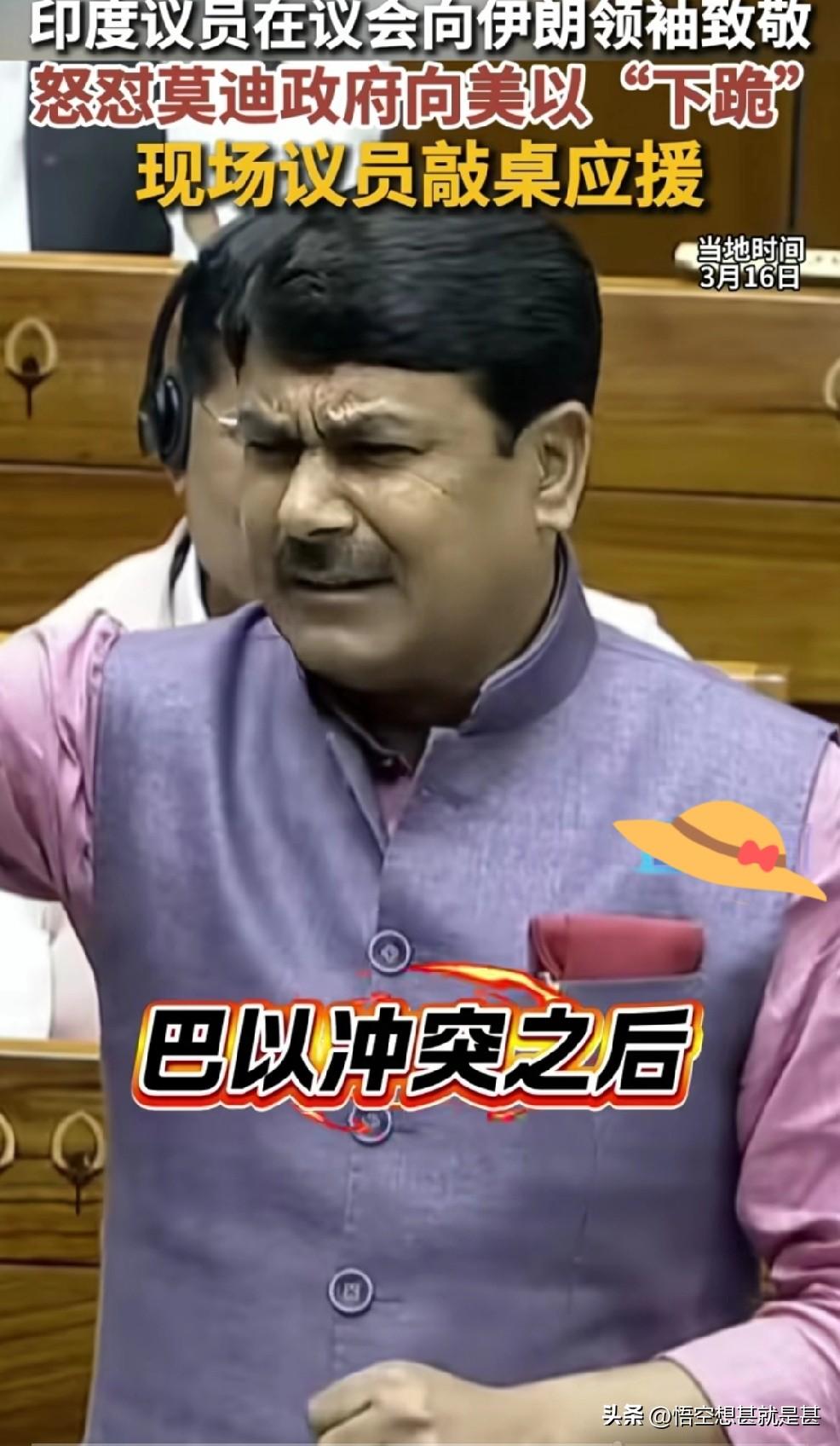 当地时间3月16日,印度社会党议员阿南德·巴达乌里亚在议会上,当着莫迪老仙的面,义愤填膺的拍着桌子说,巴以冲突后,世界上那个总理访问了以色列?他没有向你一样,向美国卑躬屈膝,但你却向美国“下跪”,我们向伊朗最高领袖哈梅内伊致敬!印度人民党政府应做出解释。 莫迪近些日子内外遇挫,使得自己脸上难得露出一丝微笑,让坐在印度总理宝座上的莫迪老仙,也深深体会一把如坐针毡的深意。 议员阿南德·巴达乌里亚说的没毛病,他一针见血的指出来阿三执政中的软肋,面对美国,甚至包括俄罗斯时,那种失去原则的外交方式是很受印度民众鄙视的。 莫迪老仙的确给人一种出访小国派头十足、甚至是趾高气昂;而见到特朗普、普京就像小媳妇见公婆,微微诺诺的存在,甚至有时像议员阿南德说的那样“卑躬屈膝”。 印度议员阿南德代表着印度部分民众,指出来莫迪政府的硬伤所在,但是莫迪政府能改之吗?还是印度的上层建筑使然?那就不会修修补补了。(个人观点,不喜勿喷,谢谢!)