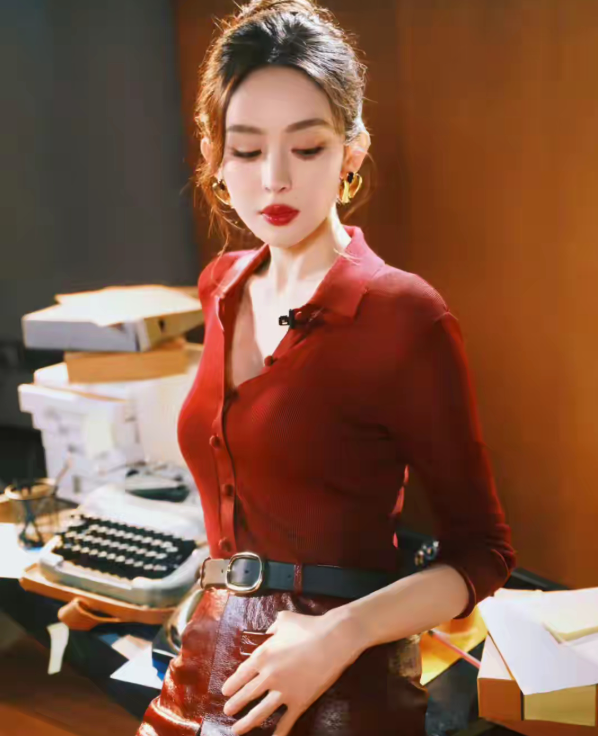 古力娜扎的红皮裙+高马尾,又欲又A,美到失语!