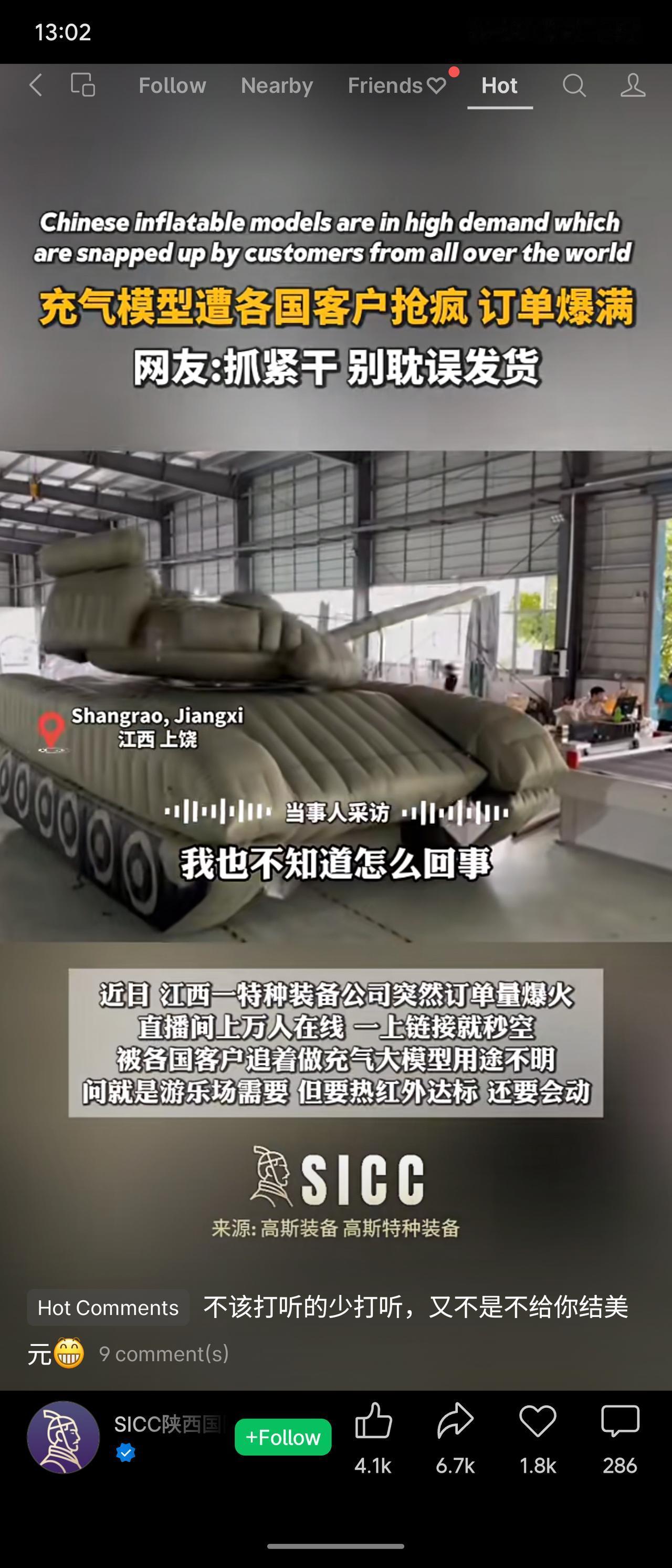 江西上饶一家充气模型公司近日海外订单暴增,产品被多国客户抢购,用途不明,仅要求“热红外达标”。网友调侃“草船借箭”“江湖救急”,提醒“不该打听别打听”。这一现象既展现了中国制造的灵活创新,也反映出国际市场的特殊需求,提醒我们在全球贸易中保持开放与理性。