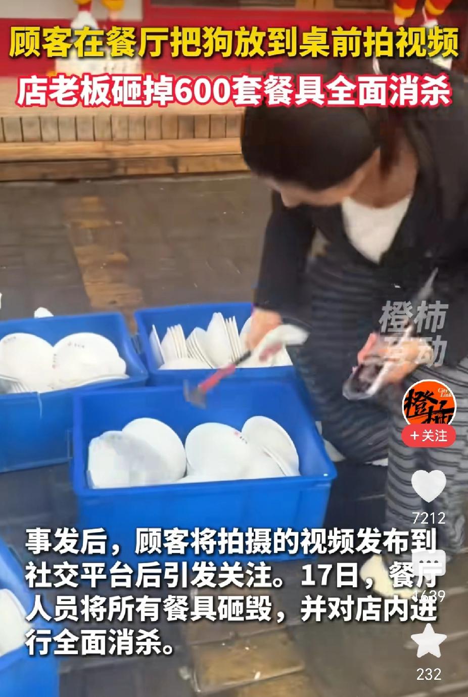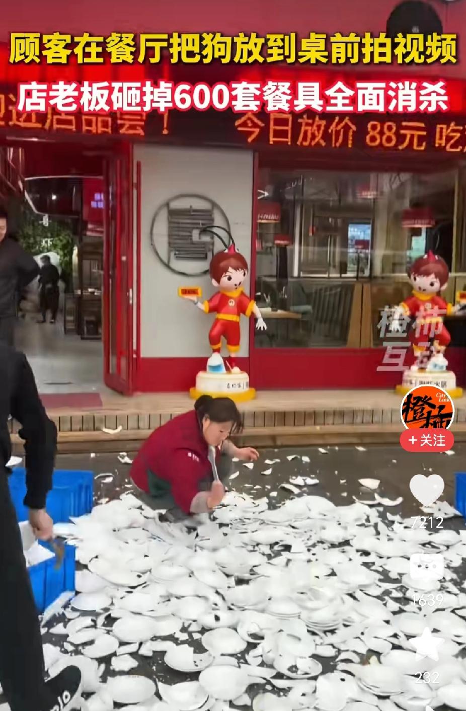 河南商丘,顾客带狗进店就餐,拍视频发网上。店主发现后,砸了将近600套餐具,损失八九千元。门店停业,全面消杀。 店主姜先生说了一句话:“餐厅干净卫生是最基本的。” 我看完这条新闻,第一反应不是愤怒,是算账。 算的什么账?成本账,风险账,还有——信任的账。 先算眼前这笔:600套餐具,八九千块钱,叮叮咣咣砸碎了。监控证明狗没碰到餐具,狗主人道歉了,但盘子还是砸了。 有人问:至于吗?监控都证明没碰到,洗洗不就行了? 至于。 因为你得看懂这组数字背后的逻辑—— 狗有没有碰到餐具,店主不知道。民警说“没有办法证明小狗是否用了盘子”。网友看到的是“狗在餐桌上”,没人关心“碰没碰到”。那600套餐具从此有了一个洗不掉的标签:疑似被狗用过。 你洗得干净盘子,洗不干净人心里的那根刺。 再算另一笔账:店主的损失是八九千,狗主人的成本是多少? 一个视频,上传,配文,发布。零成本。 视频发酵了,网友@店主了,店主看见了,盘子砸了,损失产生了。狗主人事后道歉了,但没听说赔偿的事。 这不是钱的问题,是成本错位的问题。 一个人拍视频的成本是零,一家店挽回信任的成本是八九千。一个人“秀一下”的冲动,变成一店人“扛一下”的损失。 这笔账,算得让人憋屈。 店主说了一句话,我反复看了好几遍:“餐厅干净卫生是最基本的。” “基本”这两个字,现在成了最奢侈的东西。 什么是“基本”?基本就是不用解释。进餐厅吃饭,盘子是干净的,不用问“狗用过没有”。就像进医院打针,针头是一次性的,不用问“上个人用过没有”。 可现在,这些“不用问”的东西,开始需要解释了。 有人说店主是作秀,借机炒作。 我倒觉得,这八九千块钱砸下去,砸的不是盘子,是态度。 态度是什么?是“不管狗用没用过,只要有人怀疑,我就全部换掉”的决绝。是“门店已停业进行了消杀”的行动力。是“以后门店将统一使用一次性餐具”的亡羊补牢。 这些,都是成本。 不是所有商家都愿意付这个成本。付得起这个成本的商家,至少说明一件事:他把“干净”这两个字,看得比八九千块钱重。 最后算一笔大账:公共信任的账。 为什么这件事能上热搜?因为它戳中了一个集体焦虑——我们还能不能放心地在外面的餐厅吃饭? 不是盘子的问题,是规则的问题。 宠物能不能进餐厅?各地规定不同。但有一条底线是共通的:宠物不能接触公共餐具。这不是歧视,是生物学常识——宠物唾液可能携带布鲁氏菌、弓形虫等多种病原体。 这个底线破了,所有人的信任就跟着破了。 现在我想跟那位拍视频的狗主人说:你那一个视频的成本,不是零,是全社会信任账户里的一笔支出。 你拍完了,删了,道个歉,这事就过去了。但下一个进这家餐厅的顾客,会不会多看一眼盘子?下一个养狗的人,会不会被多瞪一眼? 信任这个东西,攒起来很慢,碎起来很快。就像那600套餐具,叮叮咣咣,就没了。 最后说一句:如果我是那个店主,我也会砸。 不是冲动,是算清了账——宁可损失八九千,不让顾客心里那根刺扎一年。 愿每个开餐厅的人,都把“干净”两个字看得比钱重。 愿每个带狗出门的人,都记得:你的宝贝,不是别人的底线。 600套餐具,砸碎的是盘子,守住的是人心。