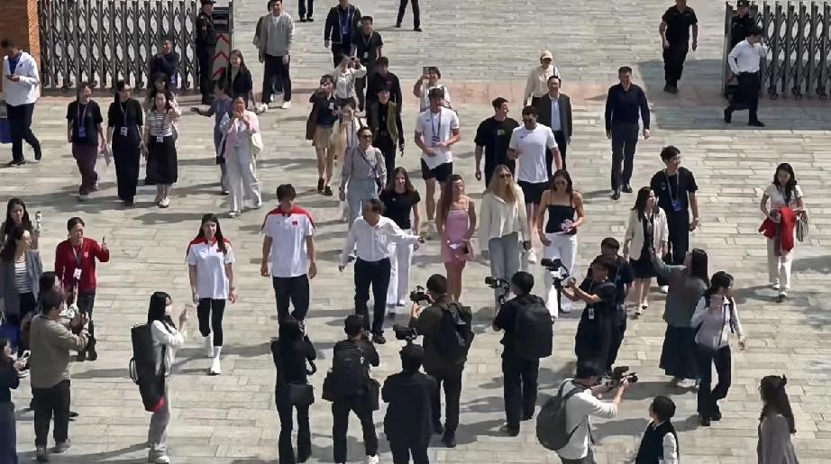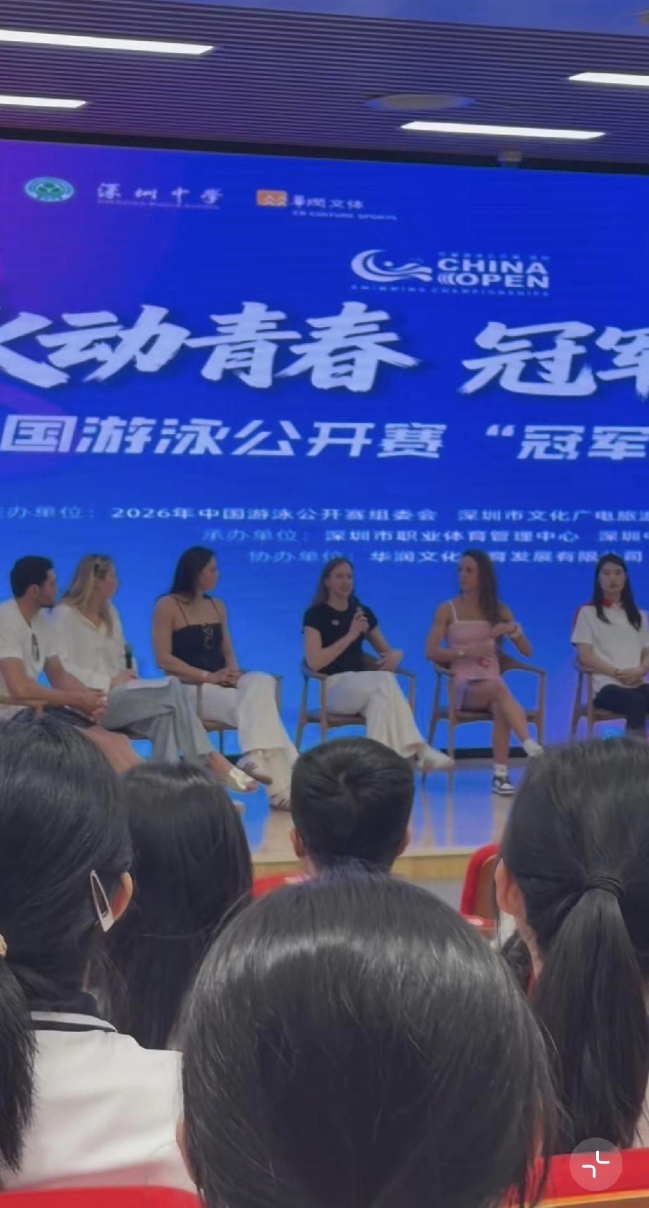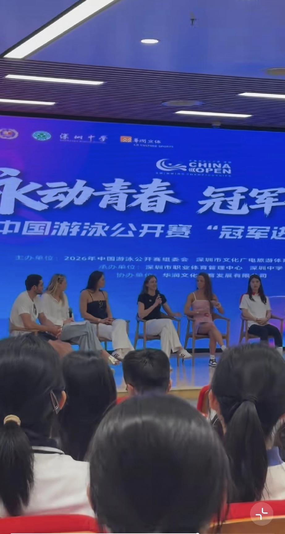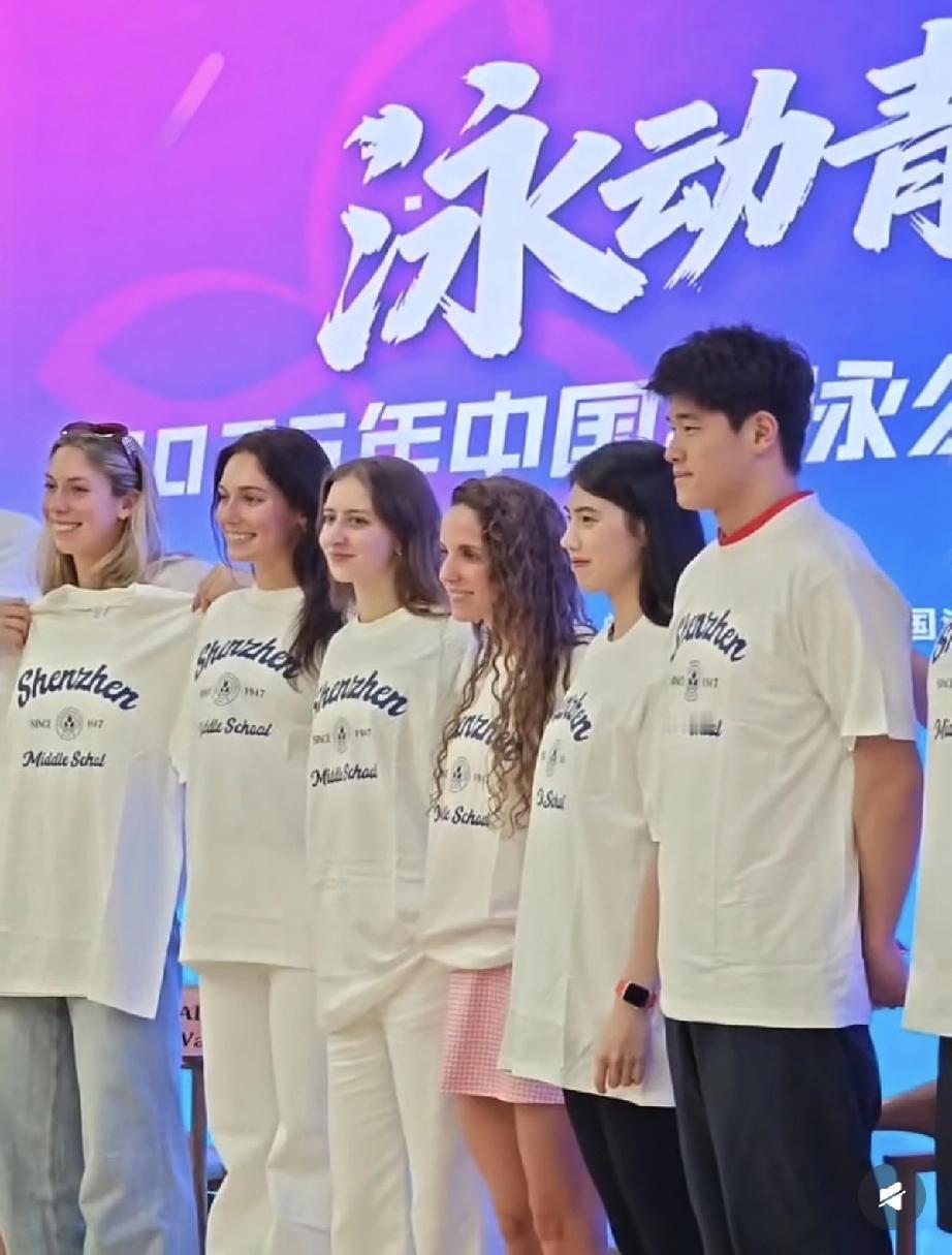 潘展乐害羞了,全程不敢看外国小姐姐,只敢黏着张雨霏! 3月18日,冠军进校园之行,游泳名将潘展乐与张雨霏一同现身深圳中学,两位的到来,引起学生的欢呼和沸腾。 几天没见,潘展乐稍微有点发胖了,脸变圆润了,脸的轮廓没有以前那么明显了,不过整体气质还是很好的,毕竟是运动员,而且他才22岁。 潘展乐和张雨霏始终同行,潘展乐更像是小弟弟似的紧跟在张雨霏的身后,张雨霏去哪里他就去哪里。 在台上时,潘展乐也是紧挨着张雨霏坐着,两位是最中间,在张雨霏的右边有一排外国美女,她们都看向潘展乐这边,但潘展乐始终不敢看她们一眼,可能是害羞吧,怕引起绯闻。 到后面外国小姐姐拿话筒说话,潘展乐还是低着头,不敢看她们,就像青春期有点自卑的男生一样,还有点搞笑。 到了校园,潘展乐也是紧跟着张雨霏,而不理会那些外国美女,对她们选择无视。 这才发现,潘展乐虽然是00后22岁,但不怎么开放,还有点害羞,不敢跟外国美女聊天,甚至不敢多看她们一眼,只敢着跟着张雨霏。 张雨霏是1998年的,今年28岁,比潘乐大了几岁,这回现身深圳中学,对潘展乐照顾有加,潘长乐还算是幸运的,否则他一个人过来会感到很不自在。