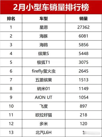 2月小型车销量:星愿狂揽半壁江山,海鸥为何跌得找不着北?