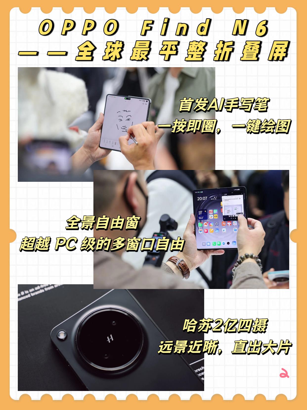 OPPO Find N6正式发布,折痕它真的消失啦! OPPO Find N6这波真的有点东西!发布会后摸到真机,只能说一句:折叠屏终于把“折痕”这事儿整明白了😮 先说大家最关心的折痕——这次是真的平了!现场无论从哪个角度打光、用手指来回划,都找不到那道熟悉的存在感。官方说是新一代钛合金天穹铰链+天穹记忆玻璃的组合拳,不仅开箱平整,久用也同样平整。 外观也很戳我。铝合金中框+玻璃背板,光线下有种很高级的金属质感,但摸上去又非常的细腻亲肤,还不沾指纹。加上8.93mm的厚度,拿在手里跟直板机没啥区别,单手握持完全不累。 这次还配了支AI手写笔,玩法挺有意思。随手画个草图,“一圈一点”就能自动生成规整的图表或流程图;线稿一键渲染成水彩、3D风格。开会记笔记还能自动美化字迹、手写公式直接出结果,打工人和学生党狂喜✍️ 最后影像也没落下。哈苏2亿超清四摄+丹霞色彩还原镜头,照片色彩更接近肉眼所见。长焦支持微距,拍细节也很能打。 一句话总结:折痕没了、颜值在线、还能当生产力工具,这波Find N6确实稳了。有喜欢折叠屏的用户,真心可以冲👏毕竟现在内存疯涨,新机首发16+1TB版才11999元,早买就等于省钱,不知道大家觉得如何? OPPOFindN6 OPPO FindN6无感折痕 全球最平整折叠屏OPPOFindN6 国产机先于苹果推出无痕折叠屏 手机体验感 折叠屏手机 手机体验感 新手机 上手体验 数码大玩家