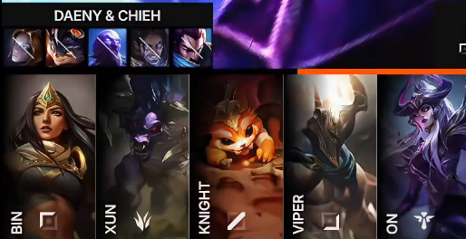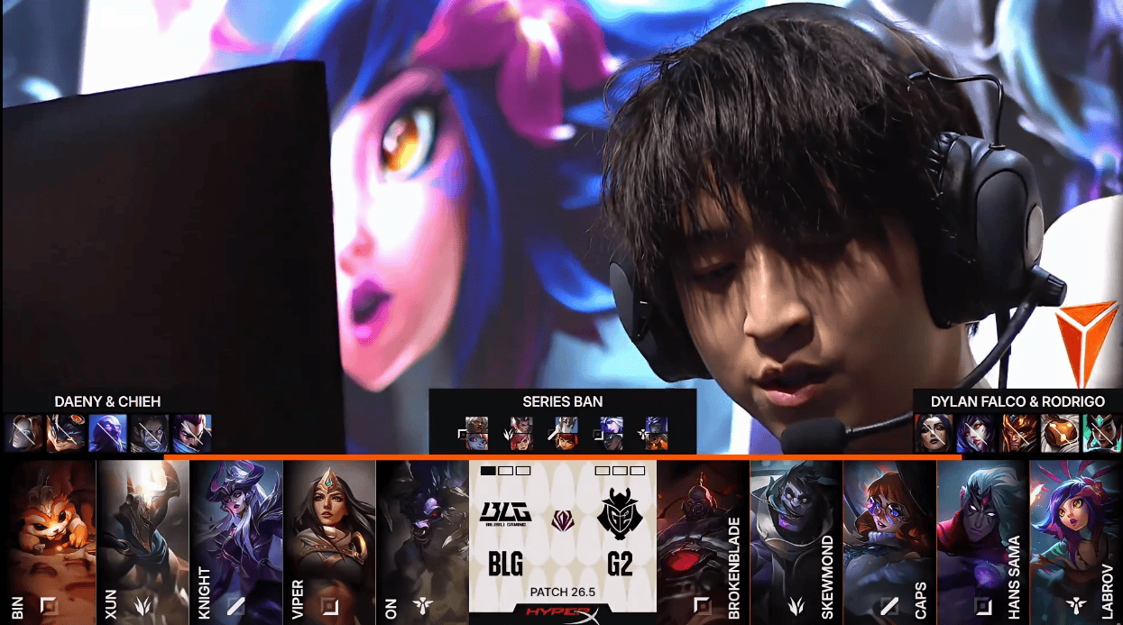 BLG选用:Bin纳尔;Xun潘森;Knight辛德拉;Viper希维尔;ON牛头