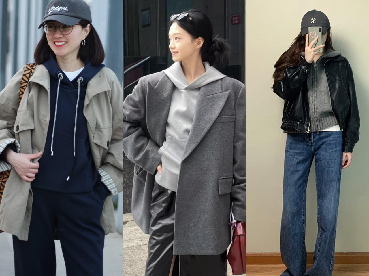 开春选择连帽衫叠穿,好看时髦显年轻,谁穿谁知道 开春了,穿搭想要简约舒适又好看显年轻,相信这是大多数中年女性内心想要的模样。要是不用买新衣服,就能穿出想要的效果,那就更好。 想要实现这个愿望,其实并不难。只要拿出衣橱里的连帽衫和外套叠穿起来,就能轻松达成愿望。像连帽卫衣、连帽针织衫、运动上衣等,都可以拿来和外套搭配。 比如,职场通勤经常穿的西装外套,平常大都是选择衬衫或T恤衫当内搭。要是把内搭换成连帽衫,帽子翻出来搭在西装领子上,造型瞬间有了层次感和看点。利落的西装在休闲连帽衫衬托下,线条变得柔和端庄,休闲场合这样穿,时髦年轻又好看。 风衣,是中年女性的气质战袍,厚薄适中的面料正适合开春穿着。平常穿风衣外套时,多数姐妹都喜欢在里面穿一件针织衫或毛衣,增加保暖,穿出柔美优雅气质。 可是每次都这样搭配,难免产生视觉疲劳。如果把运动套装的连帽上衣,与风衣叠穿起来穿着,会让你收获意想不到的效果。利落大气的风衣也能穿出休闲时髦范,换了一种风格整体更显年轻。 除了这两件外套之外,衣橱里的皮衣、牛仔外套、工装短外套等,都可以和连帽衫叠穿搭配,穿出春天的新形象。关键这组搭配不挑年龄和身材,年轻女性穿上活力时髦,中年女性穿上好看显年轻。 要是再搭配棒球帽和小白鞋呼应造型,春天氛围感更浓。中年姐妹们,拿出衣橱里的连帽衫和外套搭配起来吧,全新的形象就是我们想要的模样,谁穿谁好看。连帽休闲穿搭 连帽外套套装 连帽撞色上衣