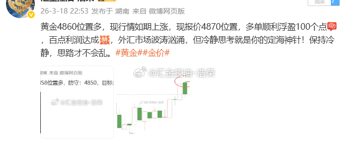 黄金4860位置多,现行情上涨至4880位置,多单止盈200个点,二百点利润落袋为安,每一次博弈都成为积累进阶的台阶,在跌宕起伏的过程中,稳步靠近既定目标。黄金金价