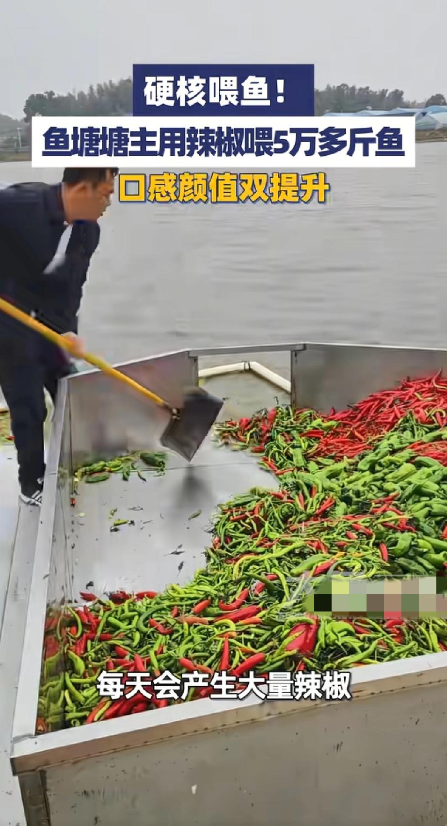 你敢信吗?我刚刷个离谱事儿,有人坚持两年用辣椒喂鱼! 就是那种红的绿的朝天椒小米椒,直接往鱼塘里倒,每月能喂近10吨,最多一天干一万斤! 一开始我以为这人疯了,结果人家算盘打得我在武汉都听见了。 帮农户解决辣椒滞销,烂在地里的辣椒直接变饲料,不用花钱扔垃圾。 养鱼成本直接砍半!辣椒比饲料便宜多了,鱼吃了还不爱生病,长得贼快 最绝的是!鱼吃了辣椒居然不辣!肉质更紧实,土腥味都没了,咱们做鱼的时候连辣椒都省了! 你说这脑瓜子咋长的?简直是当代农业版的空手套白狼!
