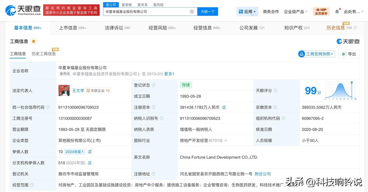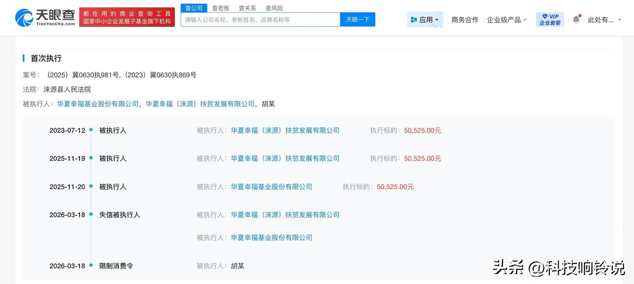 【华夏幸福被列为老赖 华夏幸福拒不履行执行和解协议成老赖】 天眼查法律诉讼信息显示,近日,华夏幸福(600340)因无正当理由拒不履行执行和解协议,被涞源县人民法院列为失信被执行人(老赖),履行情况为全部未履行。案件流程信息显示,2025年11月,该公司因该案件被执行5万余元。 华夏幸福基业股份有限公司成立于1993年5月,法定代表人为王文学,注册资本约39亿人民币,经营范围包括对房地产、工业园区及基础设施建设投资,房地产中介服务等。股东信息显示,该公司由华夏幸福基业控股股份公司、香港中央结算有限公司等共同持股。天眼风险信息显示,该公司现存多条被执行人及股权冻结信息。 天眼查信息: