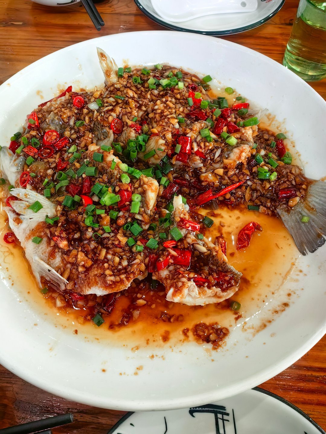 *在路上*到婺源了...口水鱼,特意要的微微微辣。淡水鲈鱼,超级鲜嫩,可以和西递
