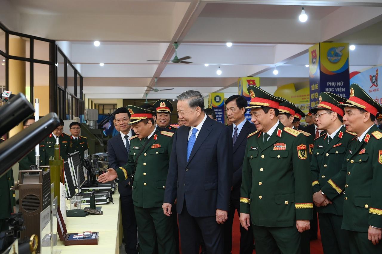 越南领导人视察越南最高军事学府——越南军事技术学院。 3月17日,越南领导人苏林在国防部长潘文江大将的陪同下,视察了越南最高军事学府——越南军事技术学院。 据悉,越南军事学院成立于1966年,隶属于越南人民军国防部,是越南国家重点大学,军队和越南领先的科技培训与研究中心。是越南最高级别的军事工程技术大学(类似于中国的国防科技大学) 越南军事技术学院是越南军工技术人才的摇篮,更是军事科研的核心基地。自2020年以来,学院已经培训了数千名高素质人才,其中包括200多名博士、1500多名硕士和3000多名工程师,目前各类在校学生超过6000人,在国内外科研和竞赛中取得多项优异成绩。