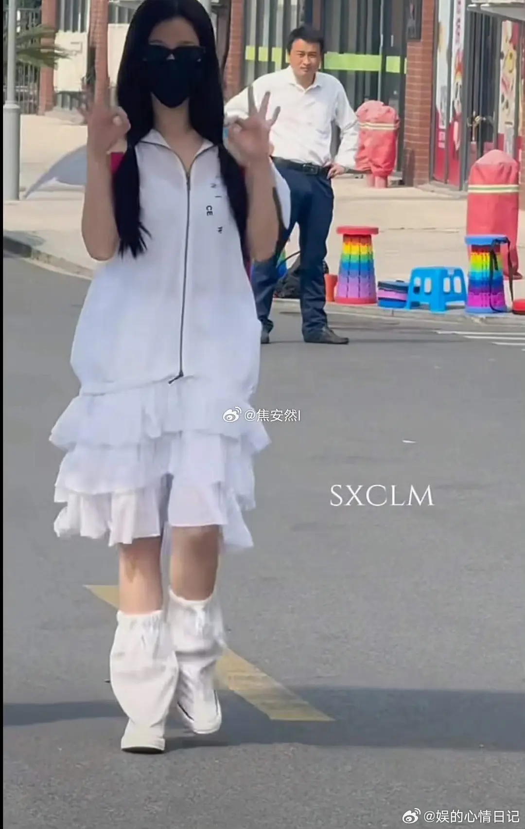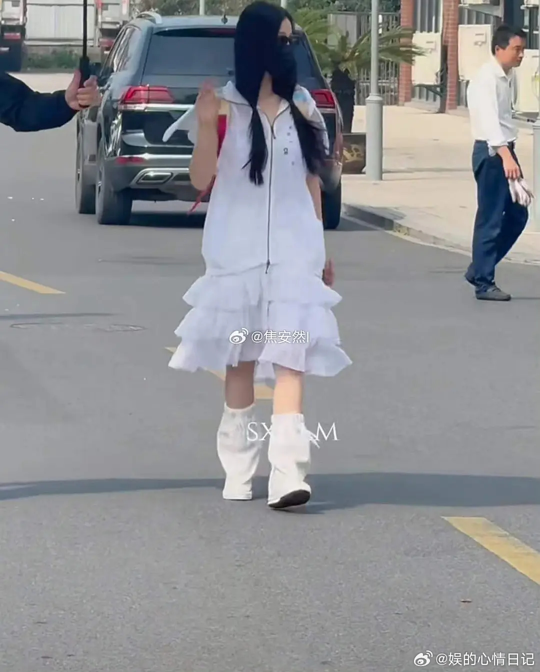 杨幂2024巴黎时装周LOEWE秋冬造型这场很奇怪外场有穿肉丝内场就是裸腿了