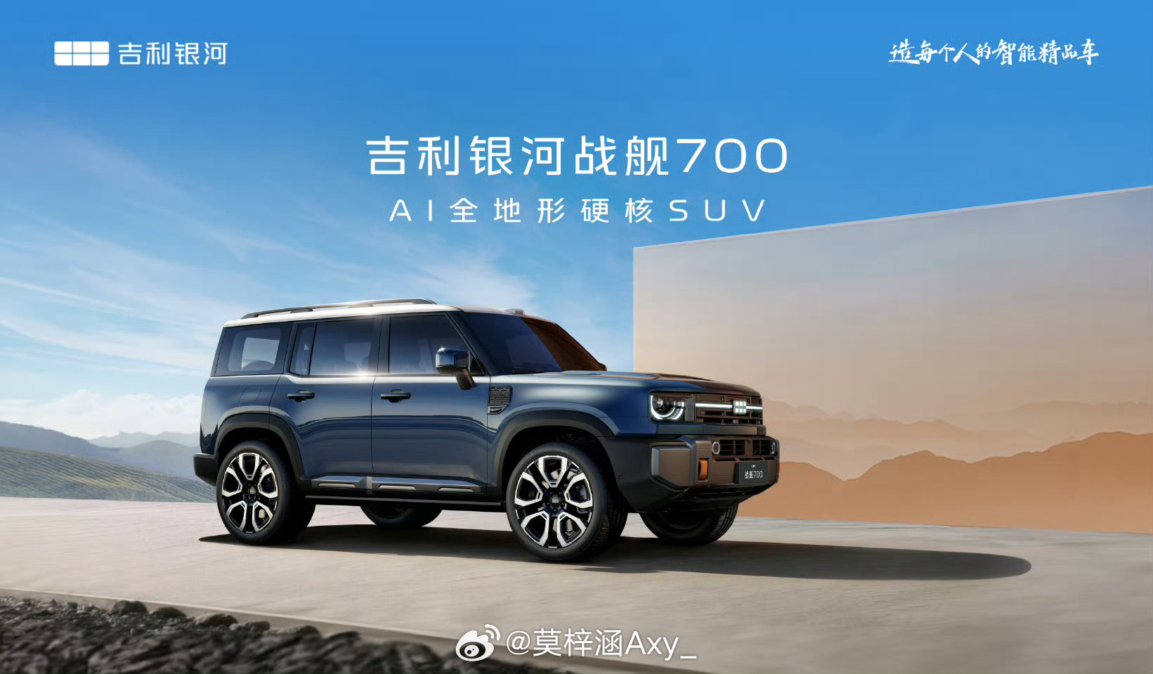 吉利全地形硬核SUV命名官宣吉利首款AI全地形硬核SUV正式定名“吉利银河战舰700”!延续了吉利对硬核车型的命名逻辑(如概念车“银河战舰”),数字“700”体现性能定位,同时暗示未来可能推出“800”“900”等更高级别车型。搭载AI数字底盘,4毫秒极速响应地形变化,支持纯电、混动、增程三模式自动切换;GVMC动态控制系统实现80km/h麋鹿测试,创硬派SUV纪录。具备全地形通过能力,兼顾硬核越野性能与智能电动体验。大v聊车汽场全开