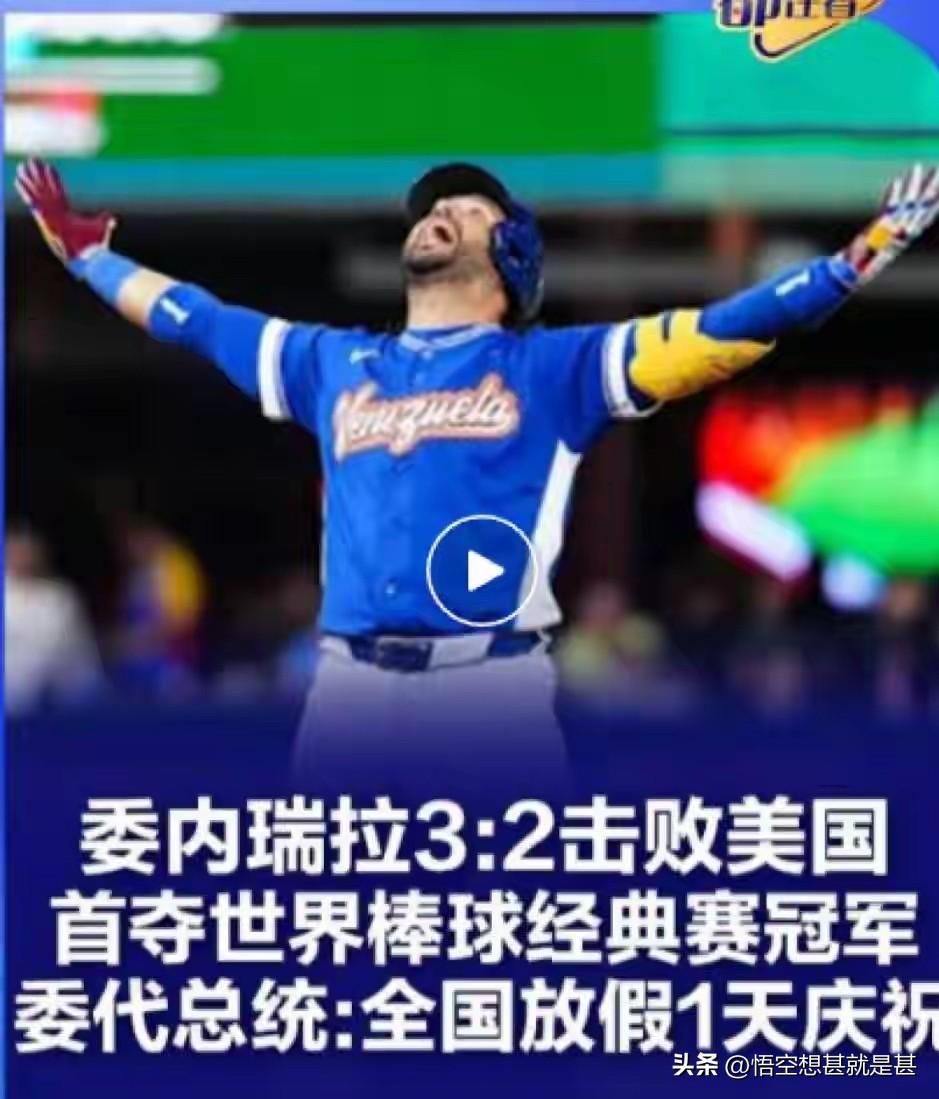 当地时间3月18日,2026世界棒球经典赛决赛在迈阿密开打,最终委内瑞拉3-2击败美国,队史首夺该项赛事冠军,总奖金高达675万美元。 委内瑞拉代总统德尔西-罗德里格斯得知自己国家球队获得冠军,喜出望外,第一时间在社交媒体上盛赞国家队的成就并宣布3月18日被定为“全国欢庆日”,除基本服务外全国放假一天。 对于现在的委内瑞拉来说,也是提振国民自信心的一件大事,所以罗德里格斯也是以此来释放民众压抑已久的情绪,激励民众积极进去,为美好的生活而工作。(个人观点,不喜勿喷,谢谢!)