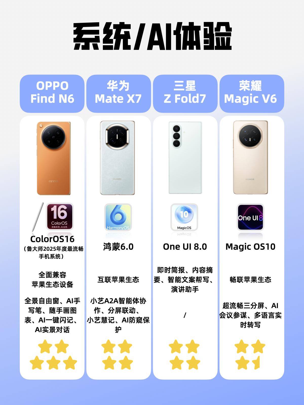 谁是2026年最值得购买的折叠屏? 作为换过3台折叠屏的老用户🙋 今年的新机真的给我挑花了眼! 📱荣耀Magic V6、三星Z Fold7、华为Mate X7、OPPO Find N6四款热门机我全做了功课 - 每款都有自己的亮点,纯个人体验分享,大家可以参考参考👆 - 试了一圈,我最心动的还得是OPPO Find N6❤️ 就是喜欢它的无感折痕 之前试了好几款,多多少少都能看到摸到痕迹 这个各种角度都几乎看不出折痕 官方说领先苹果半年真不是虚的 刷剧、看文档完全没有视觉割裂感 强迫症直接被治愈😍 📷影像一直是我纠结的点 折叠屏拍照总差点意思 Find N6是唯一配哈苏2亿四摄的 日常拍美食、夜景都很出片 悬停拍合照也超方便 最戳我这个打工人的还是它的交互体验 全景自由窗是真的香 分屏多任务比PC还顺手 一边回消息一边做表格,效率直接翻倍👍 🤔刚好Find N6今天正式开售!听说还有🎁送,想换折叠屏的朋友可以冲~ OPPO折叠屏OPPO Find N6