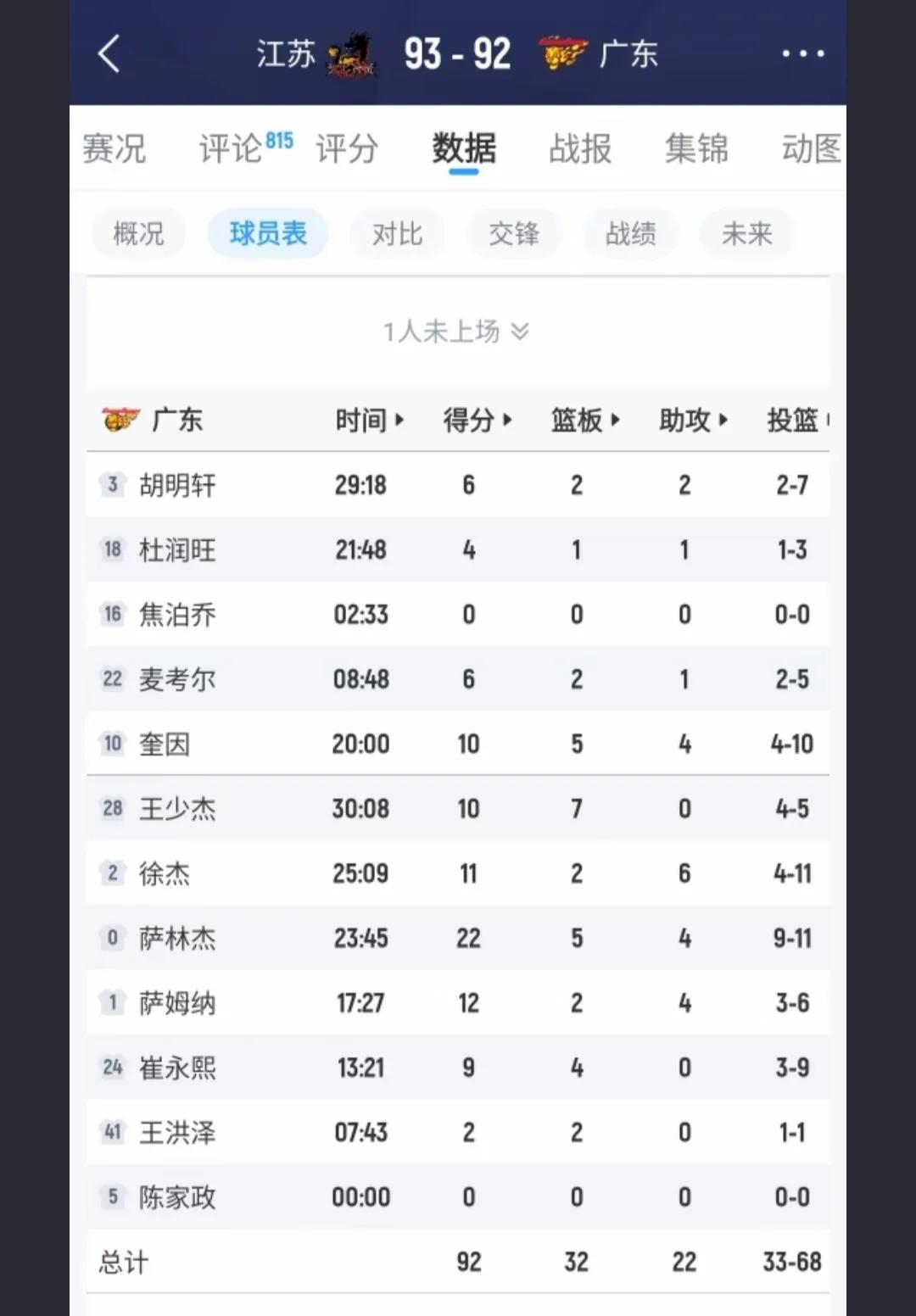 乘下1分多钟还领先8分,被江苏三个三分球搞掂,防手形同虚设?