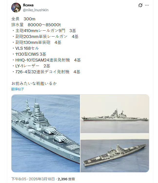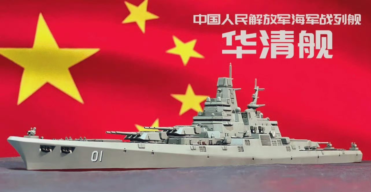 日本网友制作的中国“华清”级战列舰模型华清级战列舰排水量8万吨, 全长300米,装备9门410毫米主炮,168具垂发……烽火问鼎计划