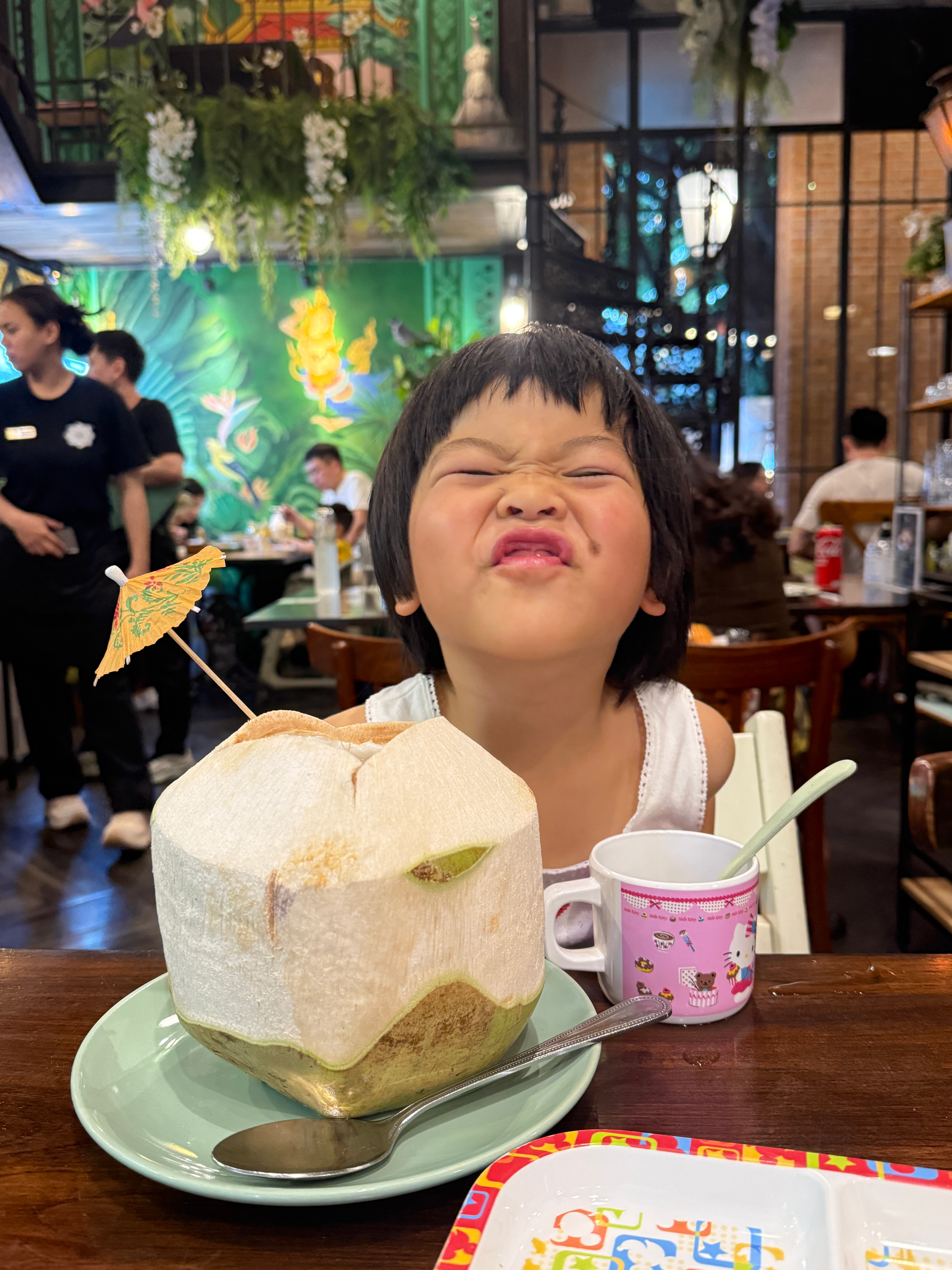 狠闹一觉我灵机一动说去买带小雨伞的椰子水才肯下车
