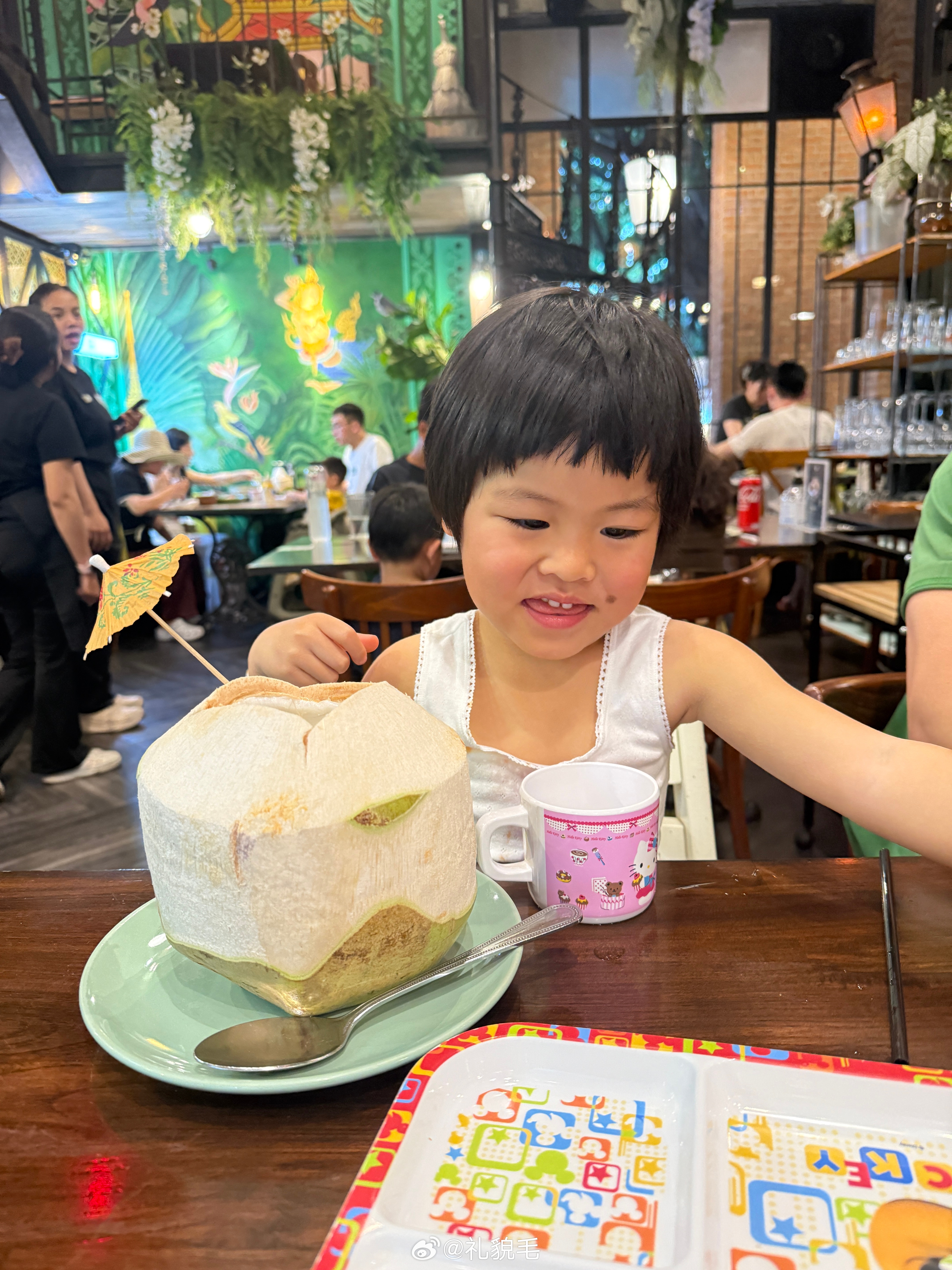 狠闹一觉我灵机一动说去买带小雨伞的椰子水才肯下车我小时候也喜欢这种小雨伞旅毛球清