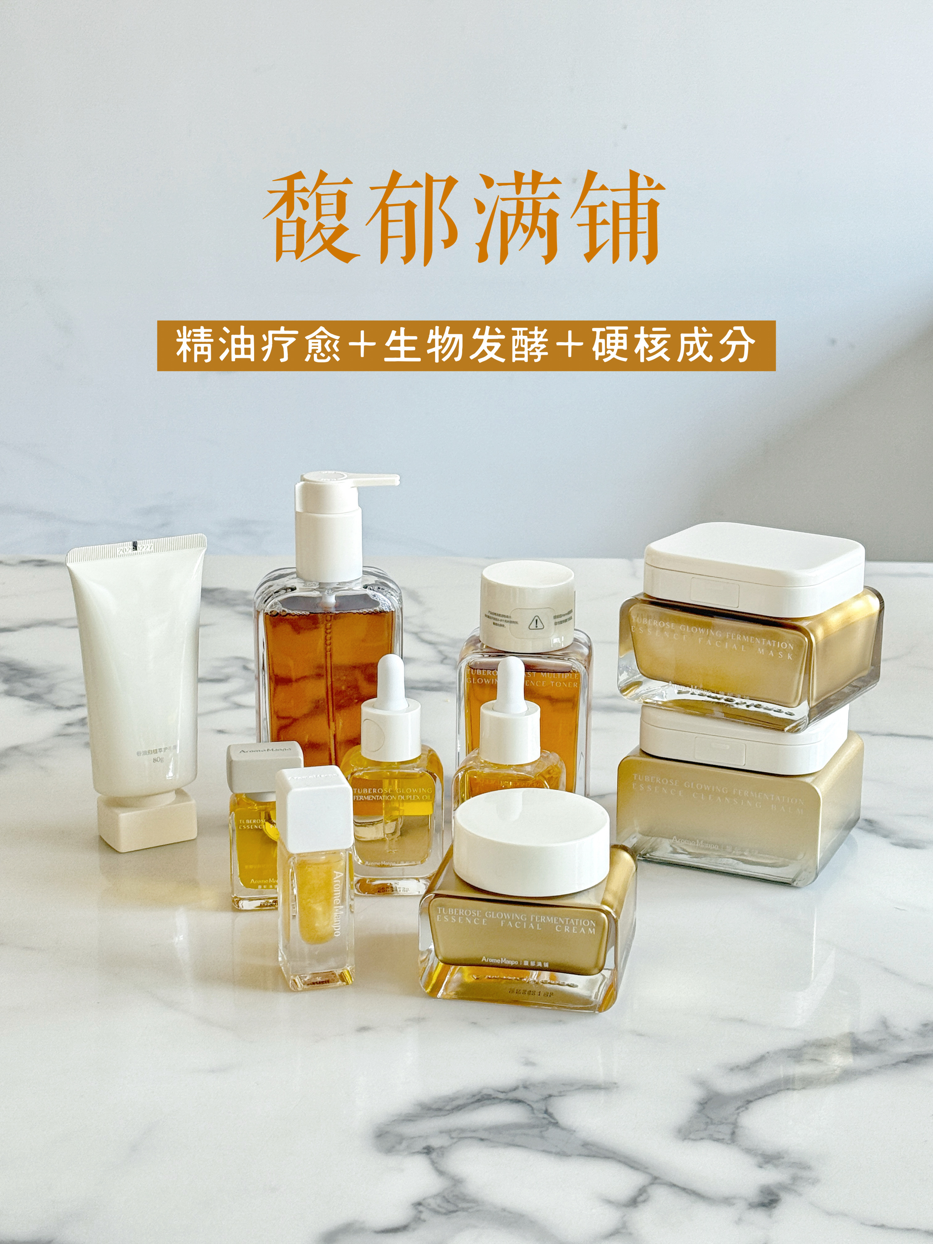 虽然是第一次开团馥郁满铺,但我已经默默推荐过无数次了,他们家是我个人认为国产护肤瓶的top(事实上销量确实是top),品牌所有产品我都用过,甚至空瓶了两个精粹水一个洁颜蜜两盒面膜,我妈和旅蛙两人空瓶了其他所有产品。这个牌子从包装到气味到使用感都非常不错,价格也不贵,试过很难不入坑。