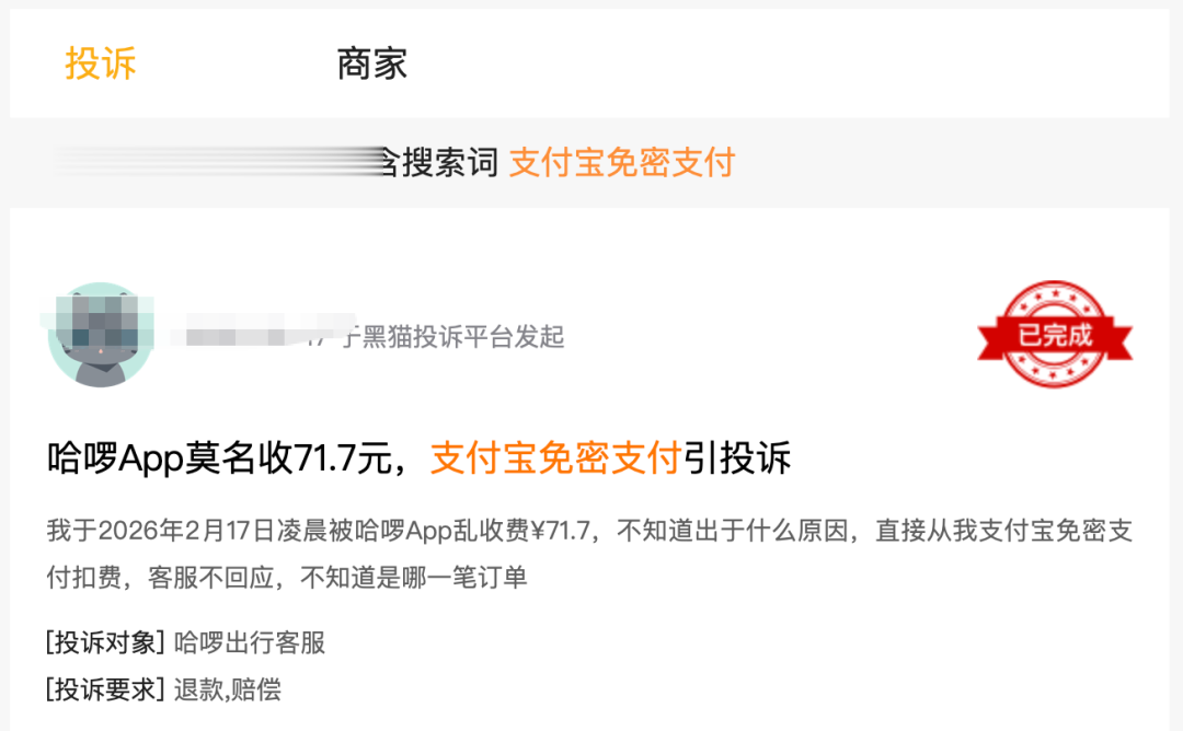 在黑猫投诉平台,针对免密支付的投诉高达5万多条,其中支付宝就有近8000条。