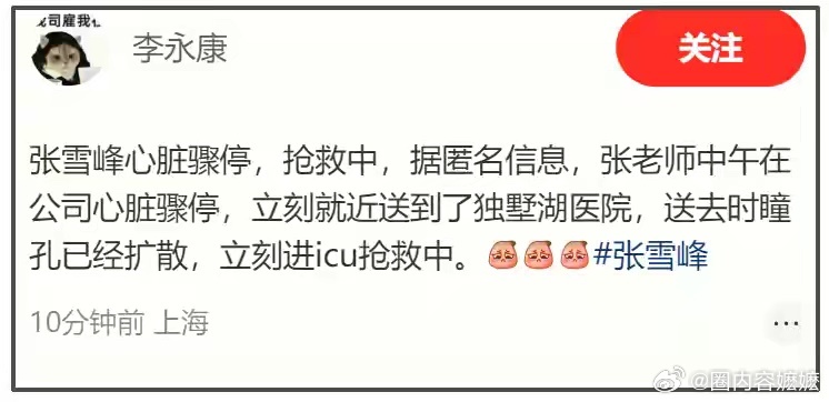 张雪峰 根据多个江苏ip网友爆料,人是下午走的,现在抖音评论区也关闭了。随后大批网友拥入公司认证600多万粉丝账号直播间询问,卖课客服直接关闭了直播。通过种种迹象来看应该是走了。合伙人回应张雪峰心脏骤停抢救传闻 张雪峰相关账号停止直播